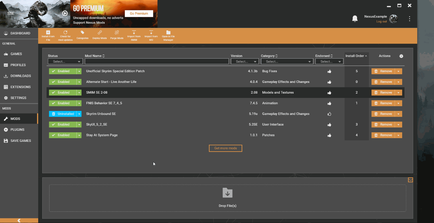 К слову, если вы думали, что устанавливать моды нынче нужно ручной распаковкой — это уже давно не так. Программа Vortex от Nexus сделает все за вас, просто нужно закинуть в нее нужные архивы и указать путь до корневой папки. Учитывая, что модов будет немного, вряд ли весь процесс займет у вас больше часа времени.