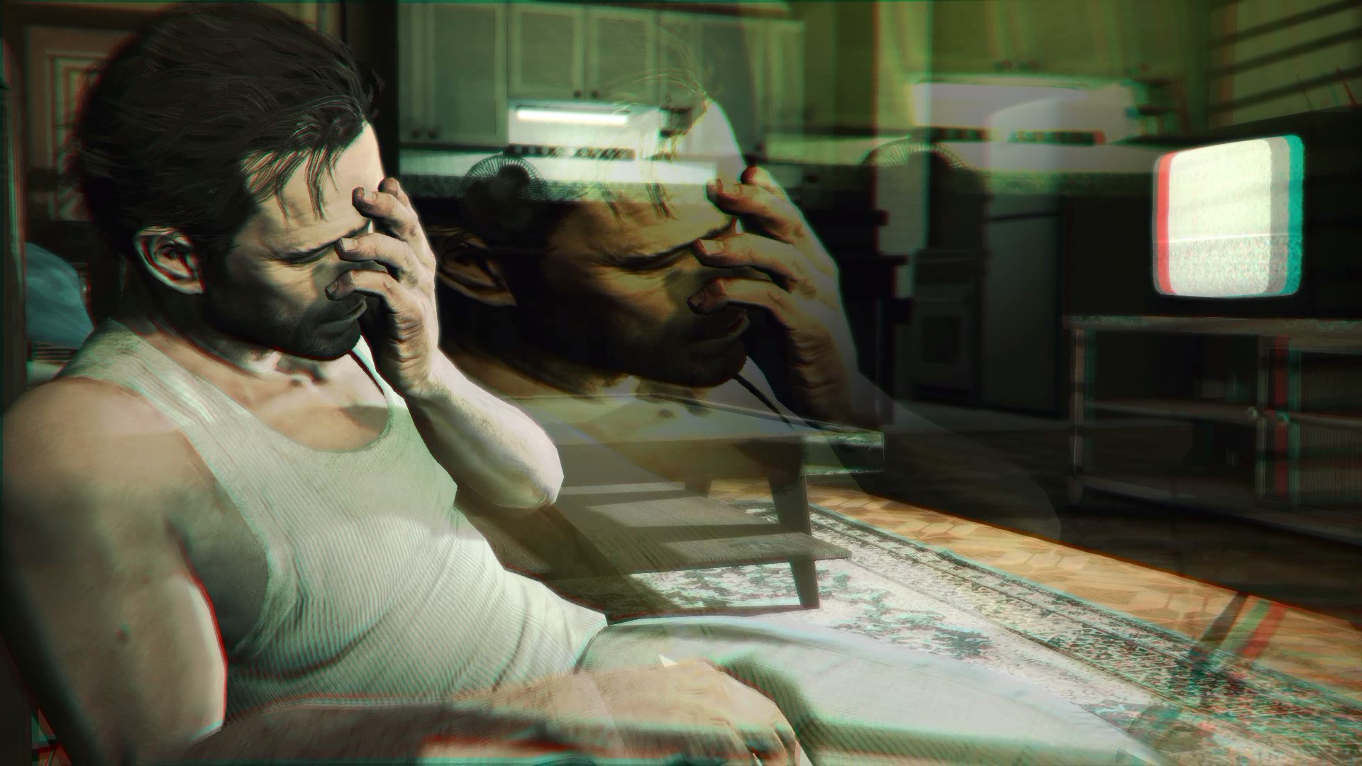 Это можно увидеть, например, во время заставок, да и игрового процесса. Долгое время на экране часто проявляется эффект хроматической аберрации, больше напоминающий мигрень с похмелья или видение мира глазами пьяного человека. Объекты двоятся, покрываются яркой пеленой, а иногда и просто рассеиваются. С течением времени таких визуальных искажений становится все меньше и меньше: Макс наконец-то отпускает бутылку, а алкогольная ломка понемногу сходит на нет.