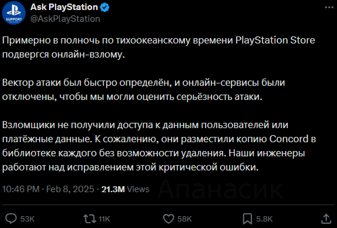 Sony знает о проблеме. Компания опубликовала в социальных сетях сообщение о том, что некоторые пользователи могут испытывать проблемы с PSN и дала ссылку на официальную страницу статуса PlayStation Network. Более подробных деталей компания не раскрыла. Также нет информации о том, когда сервис будет восстановлен.