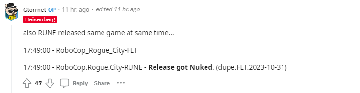 За взлом ответственны аж две группы, которые, вероятно, являются фанатами фильма Пола Верховена, раз они вдвоем захотели взломать игру по мотивам приключений робота-полицейского: Rune и FLT. Забавно, что они выложили информацию об обходе защиты Steam (Denuvo в игре не было) одновременно, если верить наблюдателям в сети.