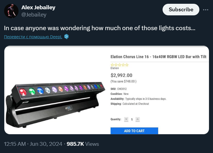 Одолев противника в финале, Dyloch, так зовут нашего героя, бросил стул за пределы ринга. Оказалось, что это было фаталити осветительному прибору. Как написал организатор CEO 2024 Алекс Джебейли, лампа стоила 2992 доллара.