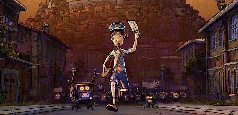 Для видео студия kaleidoscube выбрала в пример простой пазл: на пути герою встречаются проворные воришки. Один из них использует зиплайн, без которого почтальон не сможет перебраться на другую сторону. Проблему легко решить, если преждевременно ограбить отдыхающую рядом собаку и передать ее кость одному из грабителей.