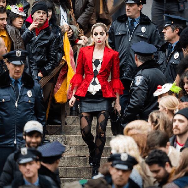 Пользователи начали активно публиковать фото Леди Гаги со съемочной площадки фильма «Джокер: Безумие на двоих». На появившихся фото актриса предстает в обновленном образе Харли Квинн, отсылающимся к классическому костюму злодейки в стиле арлекина.