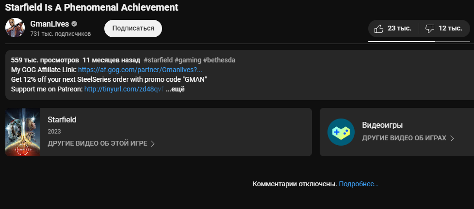Действительно, это не первый случай, когда Gman выпускает превью видеоигры, что получает массу хейта со стороны геймеров, но не от блогера. Год назад он опубликовал видео о Starfield, назвав ее «феноменальным достижением». Комментарии к этому ролику сейчас отключены.