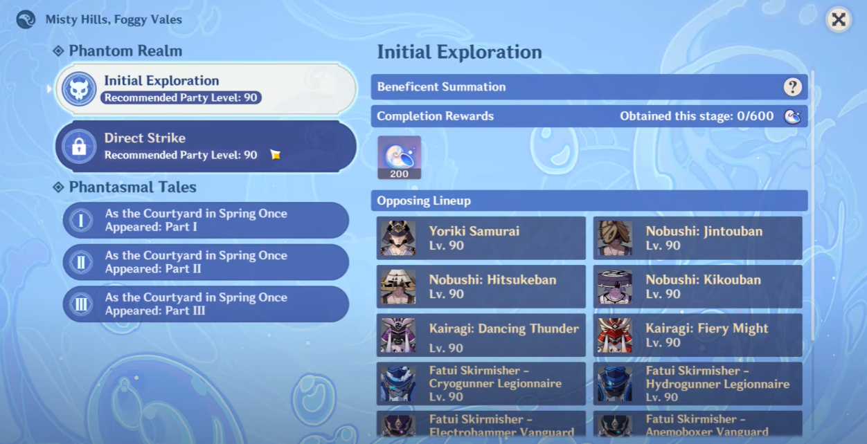 В ивенте «Туманные горы и долины» в Genshin Impact используется та же карта, что и в третьей зоне головоломок в горшке с бонсай. В частности, это та, на которой изображен побег Кадзухи от Иназумы. Есть два режима испытания.