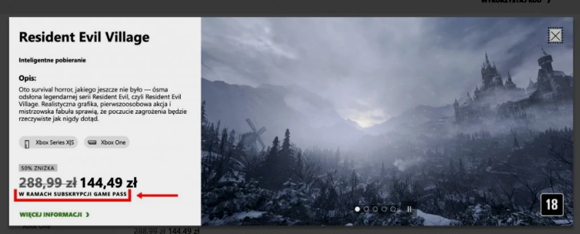 Польское издание XGP обратило внимание, что в Microsoft Store у Resident Evil Village имеется плашка, сообщающая о наличие игры в составе подписки Xbox Game Pass. У Capcom сейчас как раз проходит распродажа в магазине Xbox, и в польской версии сайта при переходе на страницу игры можно заметить соответствующую надпись. В российском магазине ничего подобного нет.