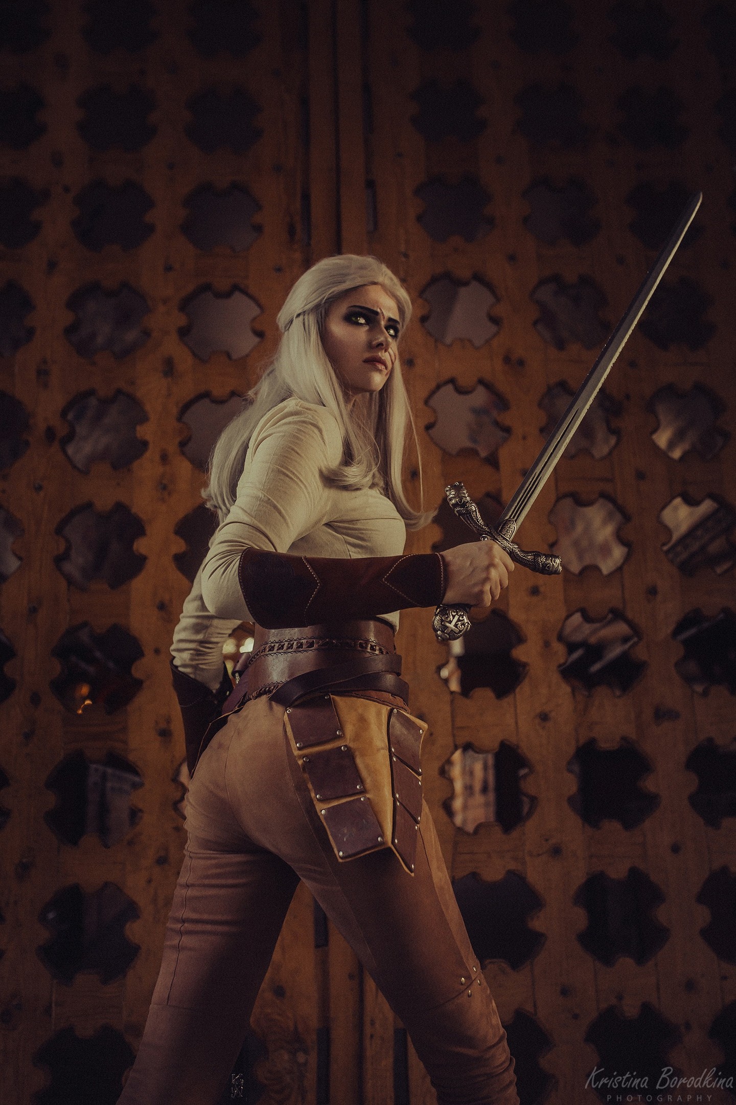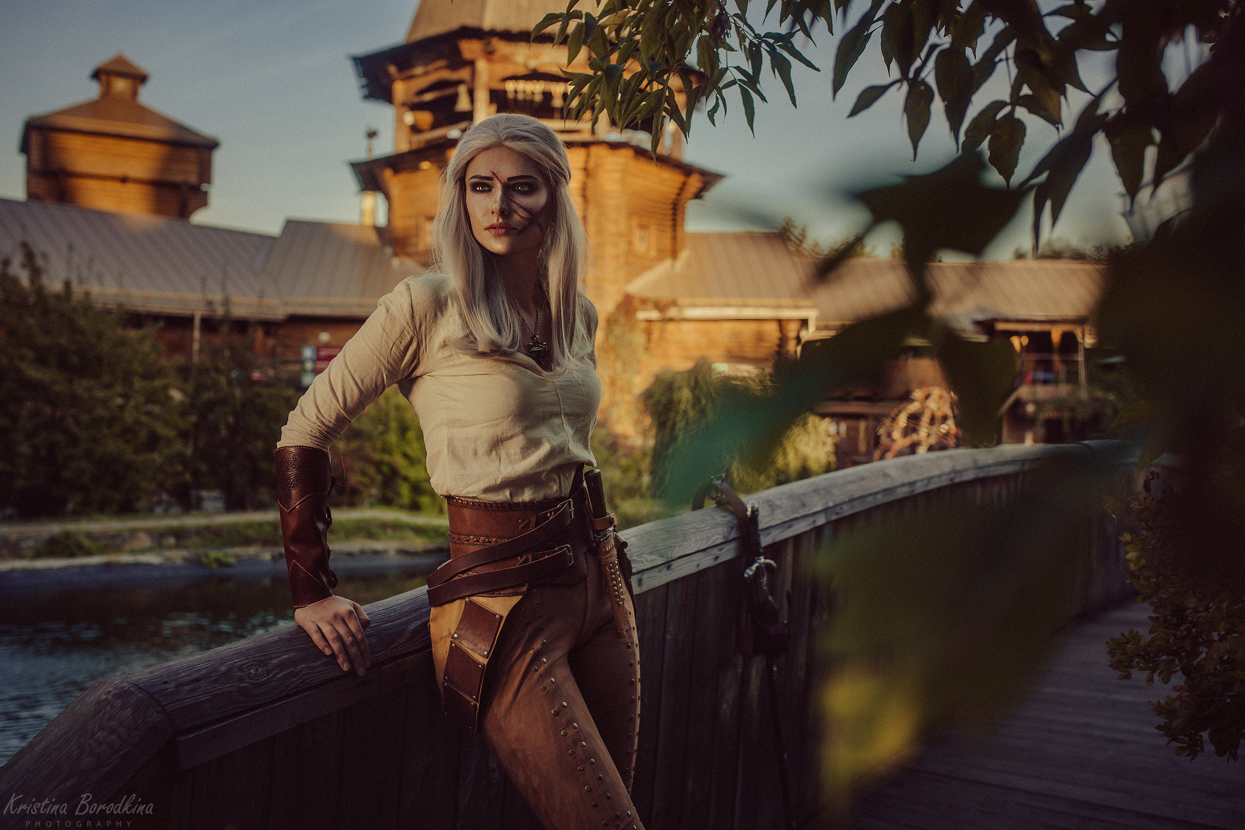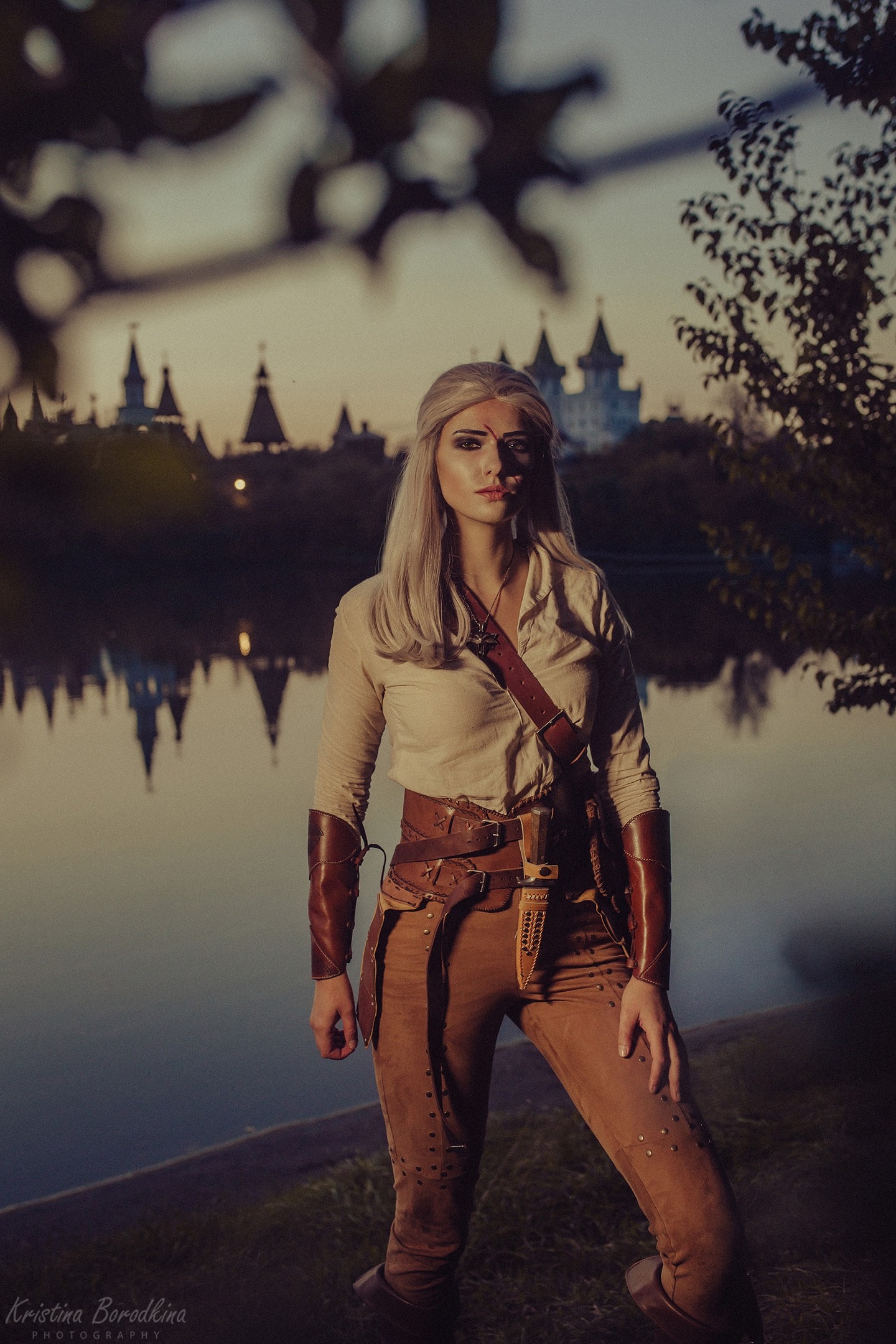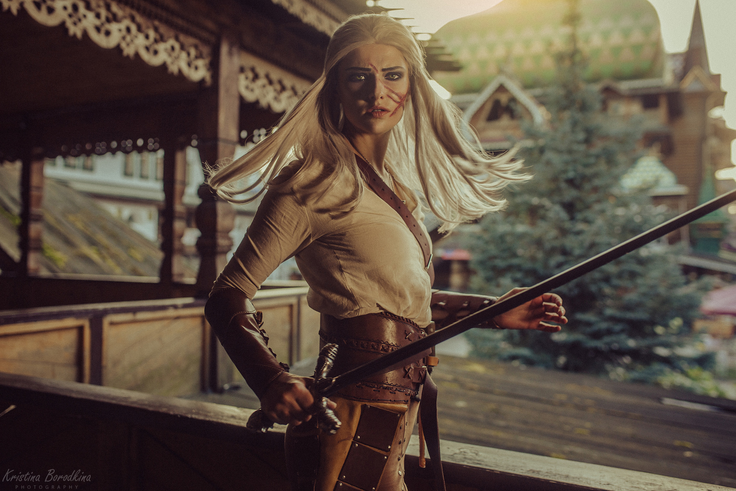 «Мы воссоздали книжный образ на Цириллу по описаниям Анджея Сапковского. Поэтому, здесь у героини огромный шрам в пол лица, и одежда, соответствующая книгам, но не копирующая игровой образ» — пишет Мирослава на странице ВКонтакте, которая посвящена ее работам.