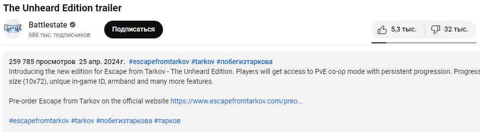 Разработчики Escape from Tarkov выпустили новое издание. The Unheard Edition добавляет PvE-кооператив с прогрессией, которую не будут затрагивать игровые вайпы. Помимо этого, игрокам дают увеличенный размер схрона (10x72 ячеек), уникальный идентификатор в игре, увеличенные карманы ЧВК, повышенную репутацию со Скупщиком, больше слотов на Барахолке и уникальное холодное оружие. А еще издание дало геймерам возможность улететь в космос на всем известной тяге. Ведь оно обойдется в 11 000 рублей для новичков и 5500 рублей для тех, кто уже является счастливым владельцем Escape from Tarkov.