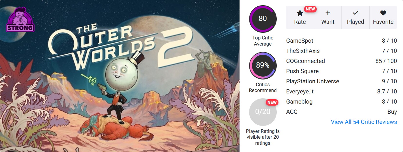 The Outer Worlds 2 получила 80 баллов на OpenCritic: журналисты хвалят боевку и повествование, но ругают затянутый старт и однообразие врагов.