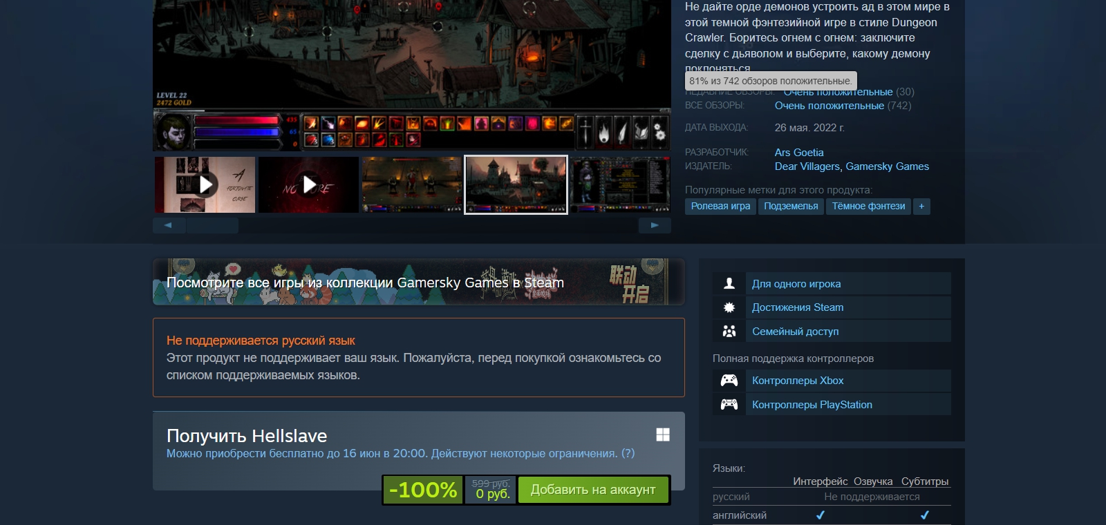 Релиз проекта, вдохновленного творчеством Джона Мильтона, состоялся еще в 2022 году. За минувшее время данжер-кроулер получил свыше 700 отзывов при рейтинге в 81%, а его разработчики приступили к созданию сиквела. Французская команда Ars Goetia планирует выпустить HellSlave 2: Judgment of the Archon в рамках 2026 года.