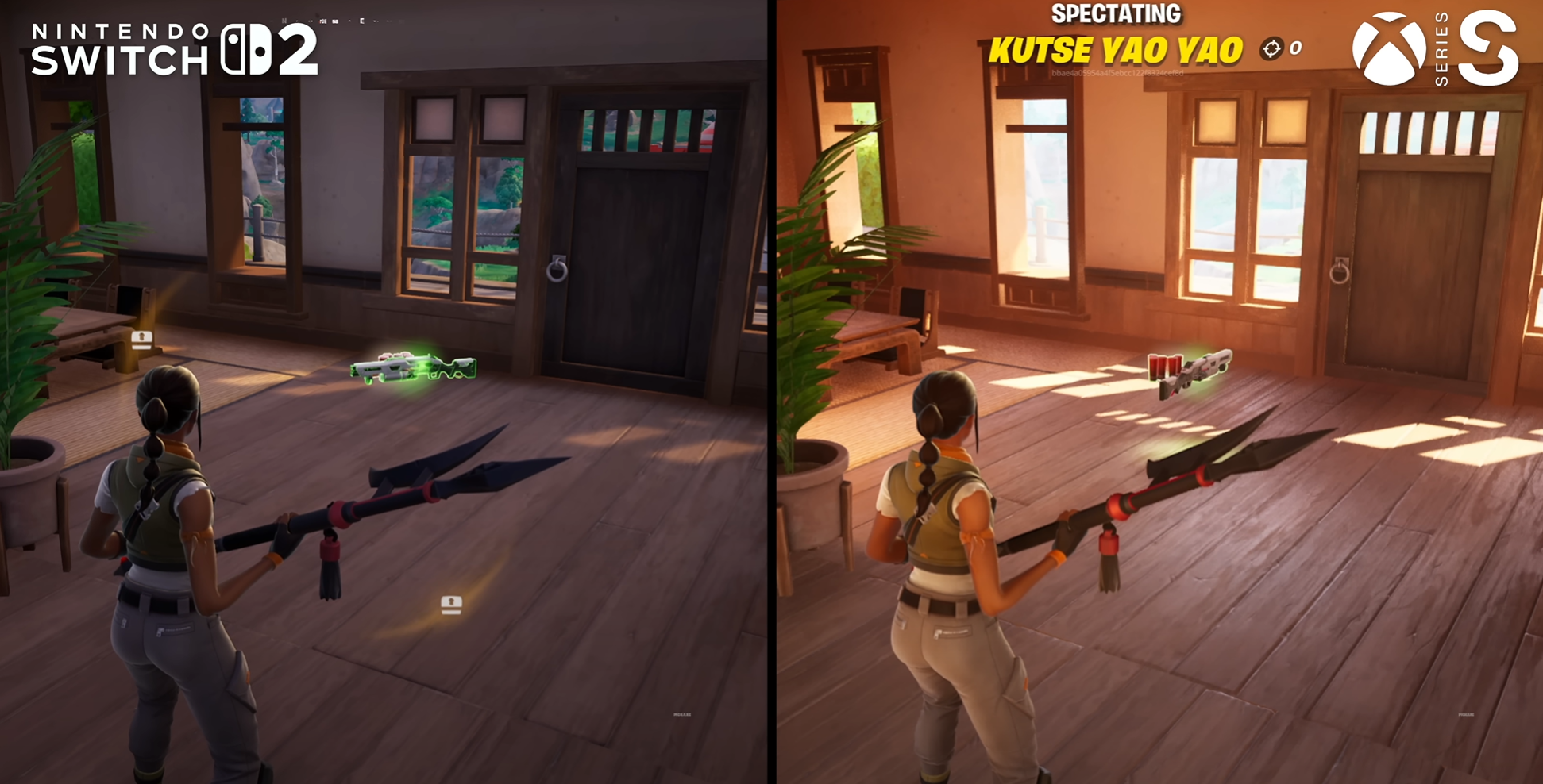Fortnite на Switch 2 также лишена этих технологий. Игра работает в 60 кадрах в секунду, но за счет отказа от Lumen и Nanite страдает детализация окружения, заметен поп-ин объектов, а модели выглядят более угловатыми. Освещение в помещениях и проработка растительности уступают версии для Series S, где все ключевые возможности UE5 сохранены.