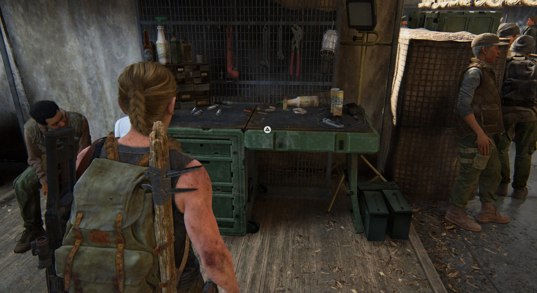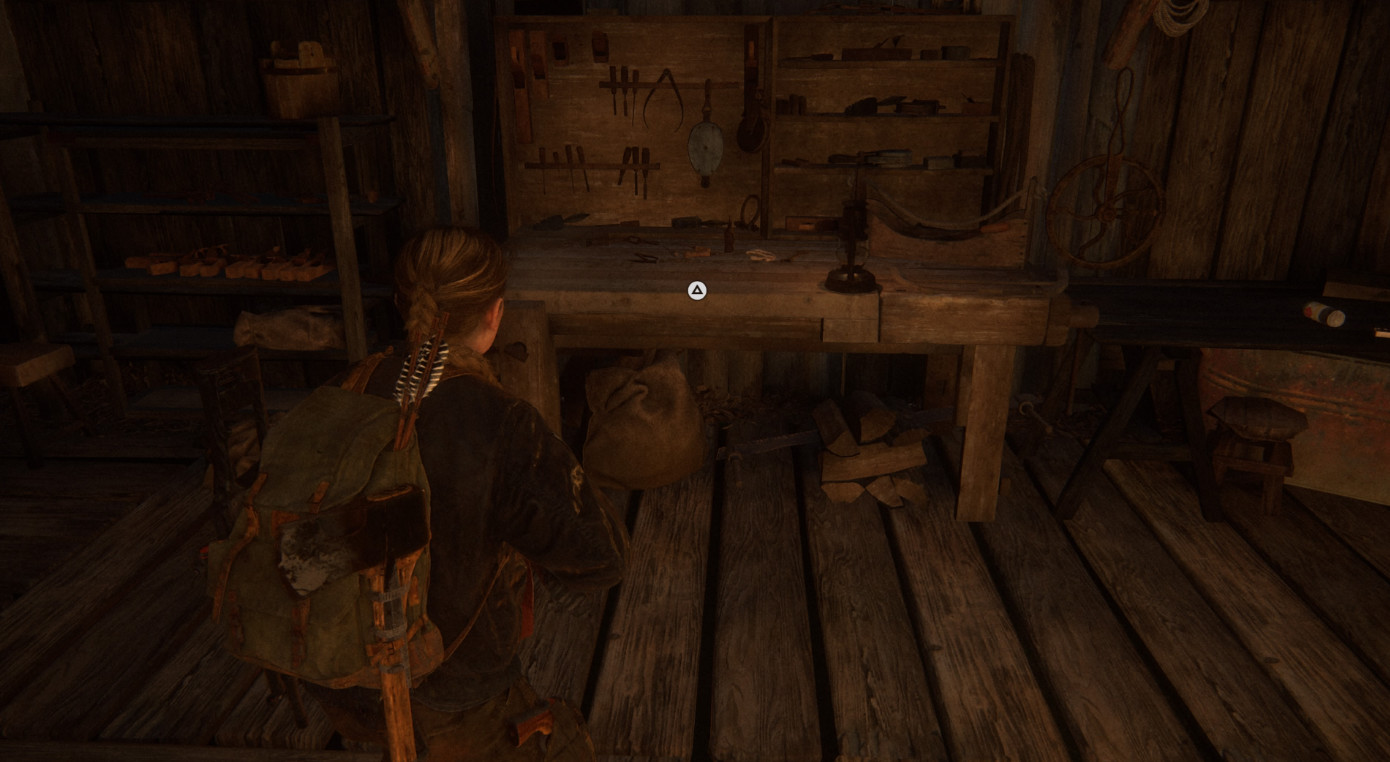 После сцены с лодкой Айзека и нападения двух шрамов, осмотрите одну из хижин рядом со сторожевой башней. Там будет верстак.
