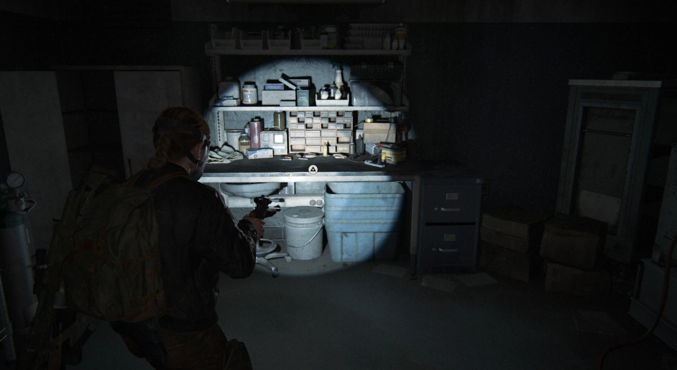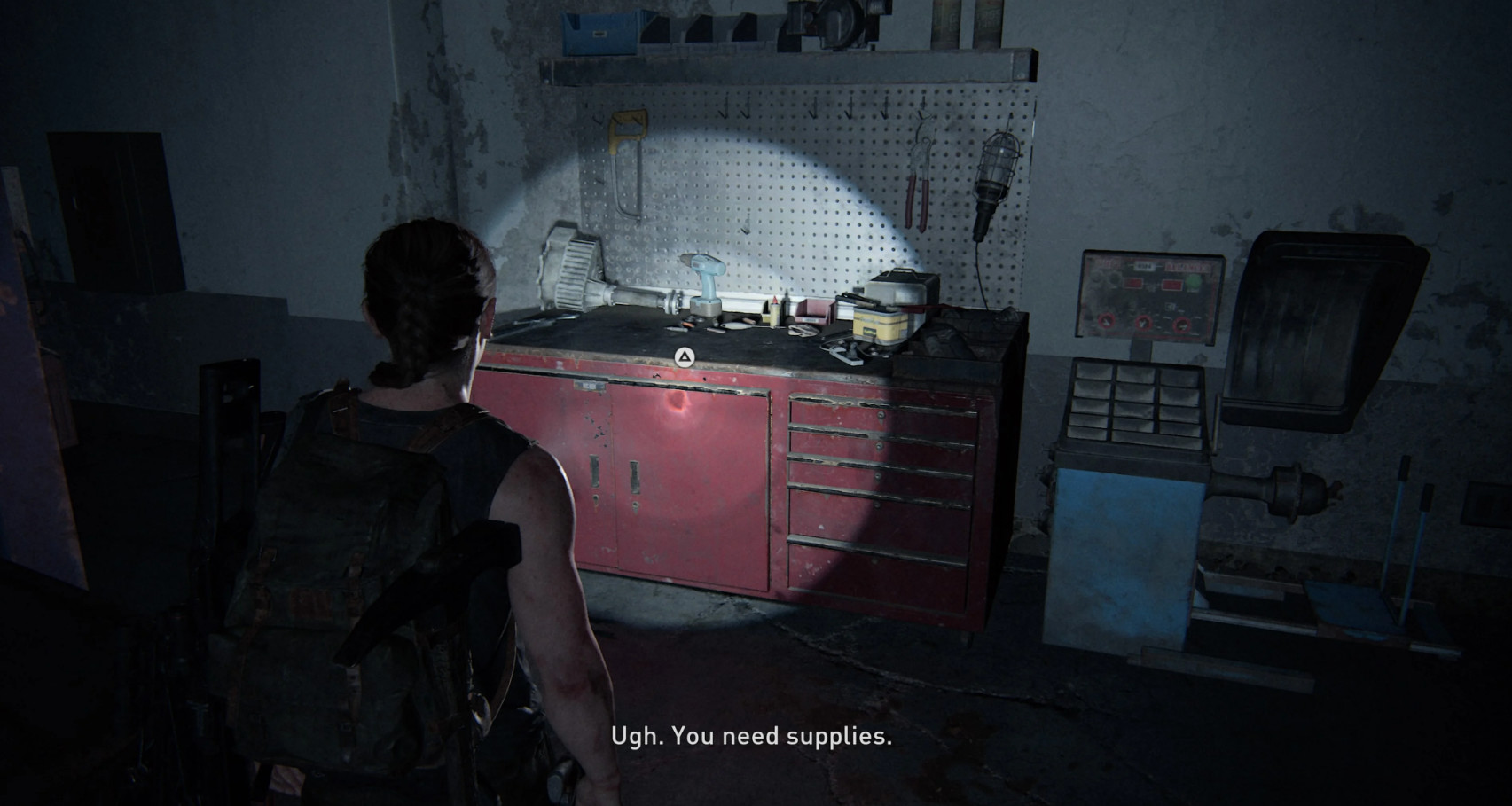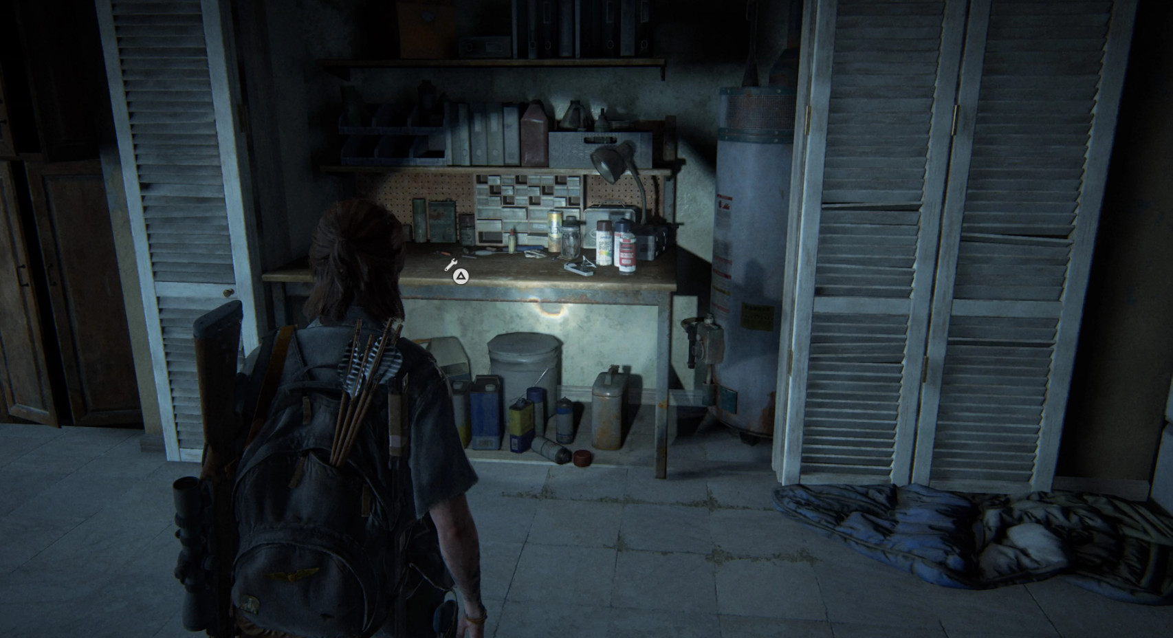 Сразу после сцены, в которой лодка Элли глохнет и мотор приходится запускать заново, направляйтесь в сторону здания, похожего на стоянку. Он находится чуть левее стороны движения. Покиньте лодку, как только заплывете в ворота. Там увидите верстак.
