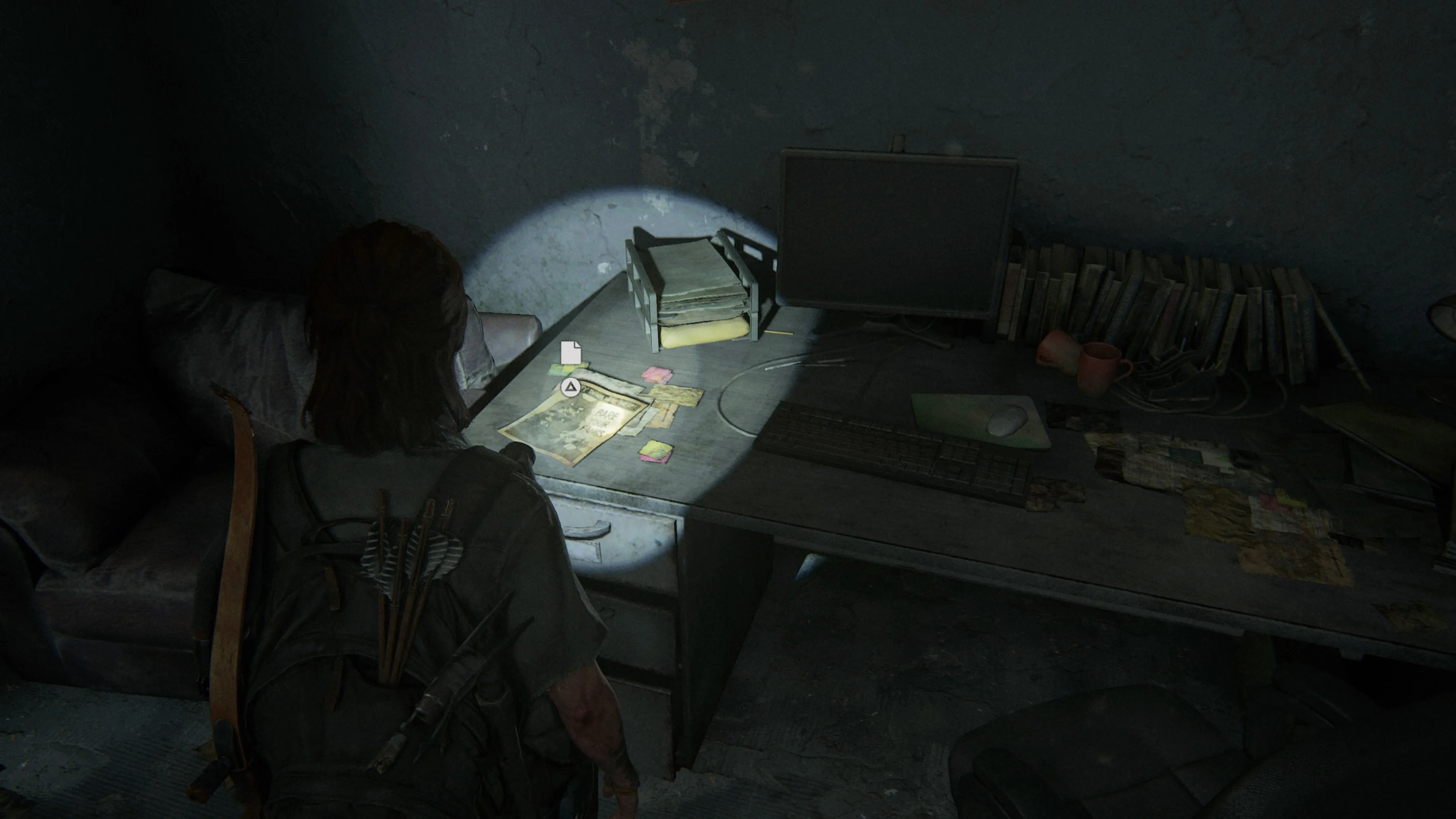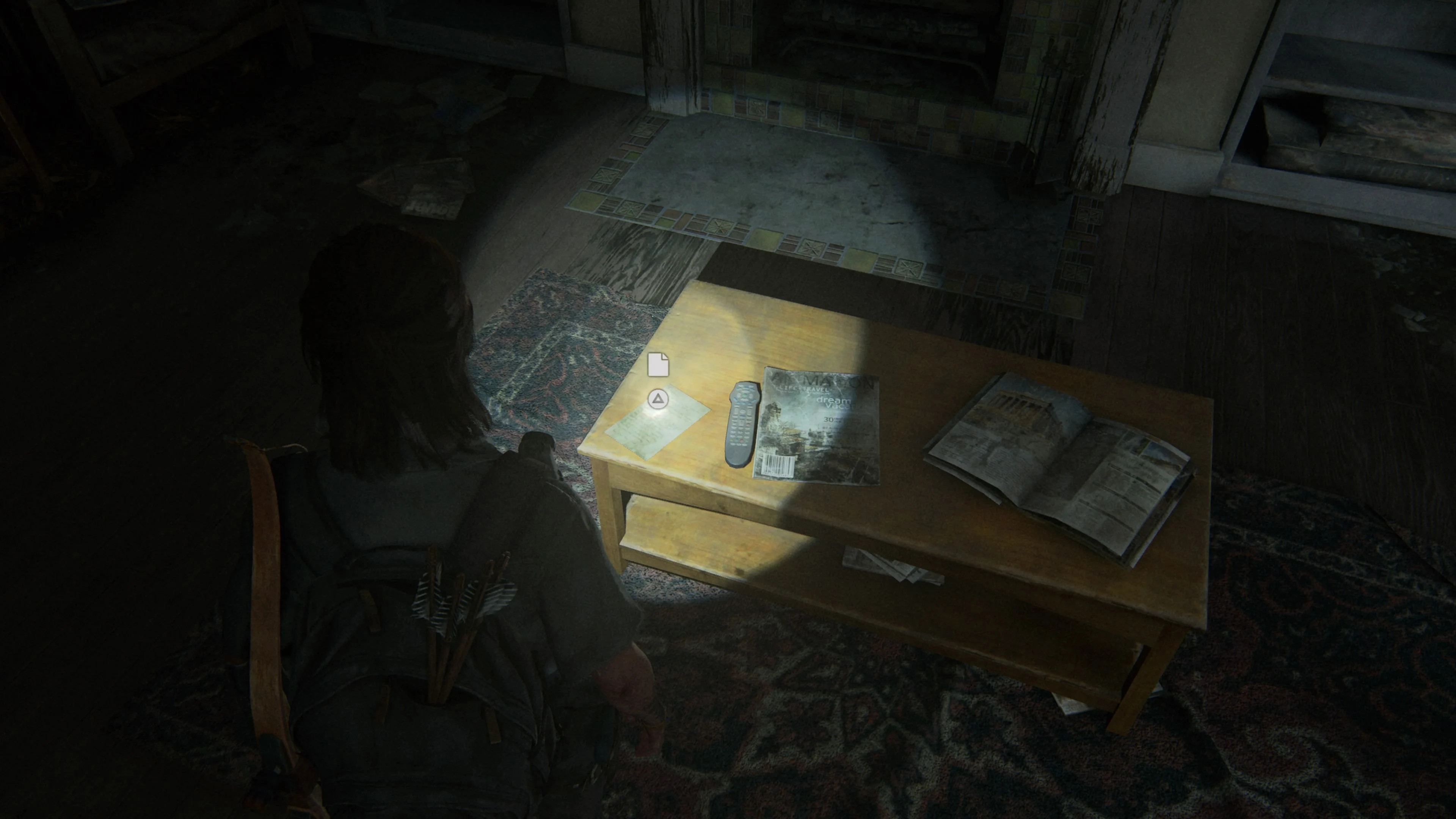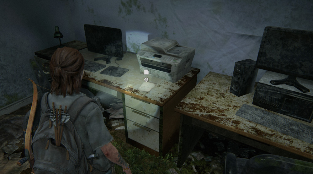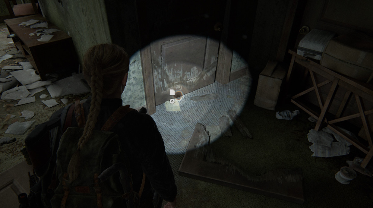 Обойти комнату с книгами для детей, вы обнаружите документы на столе в задней части комнаты. Напротив стены будет лежать заброшенная консоль PlayStation 3. Чуть праве будут документы, а также фотография, на которую девушка посмотрит, прежде, чем положить в инвентарь.