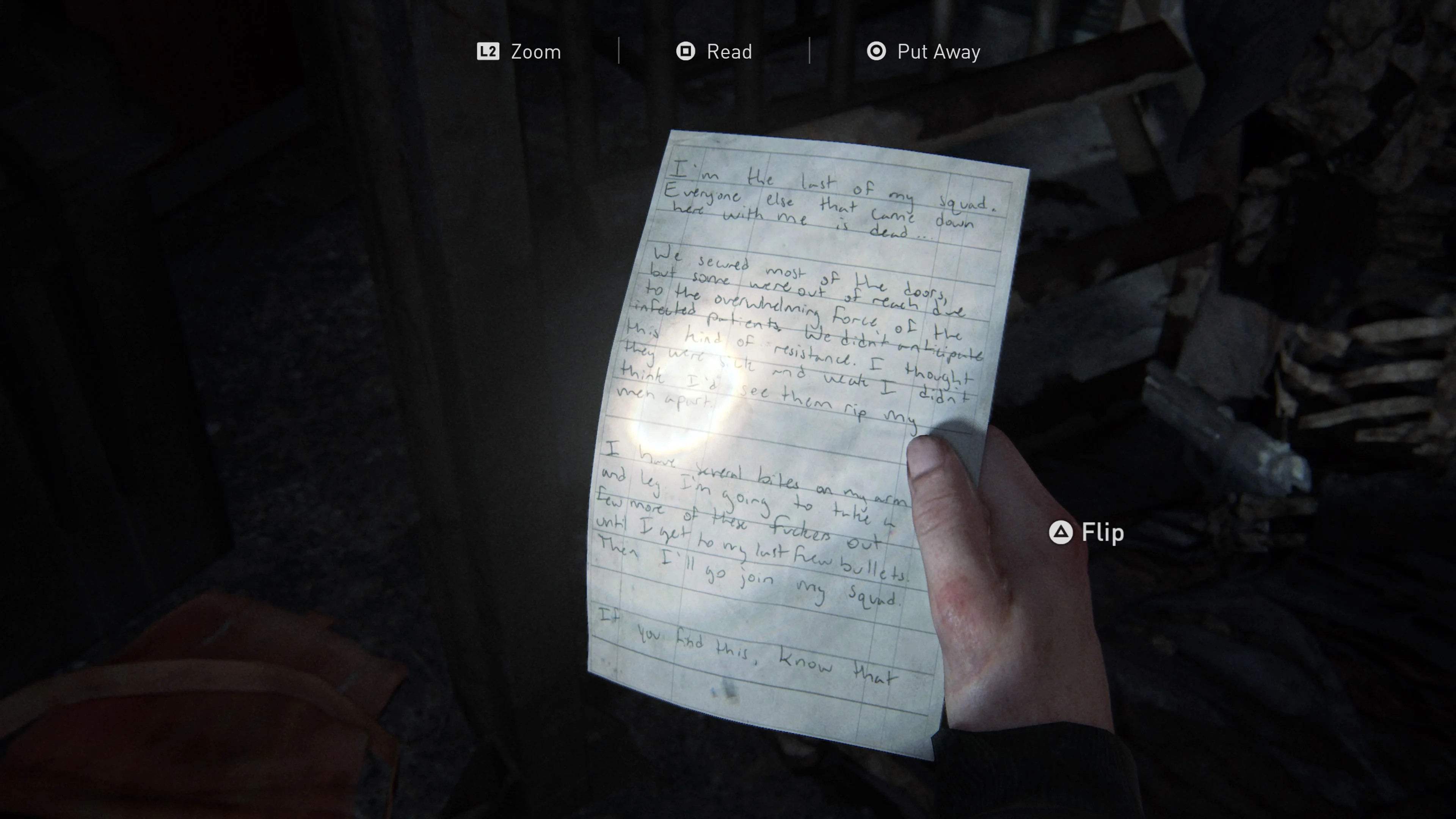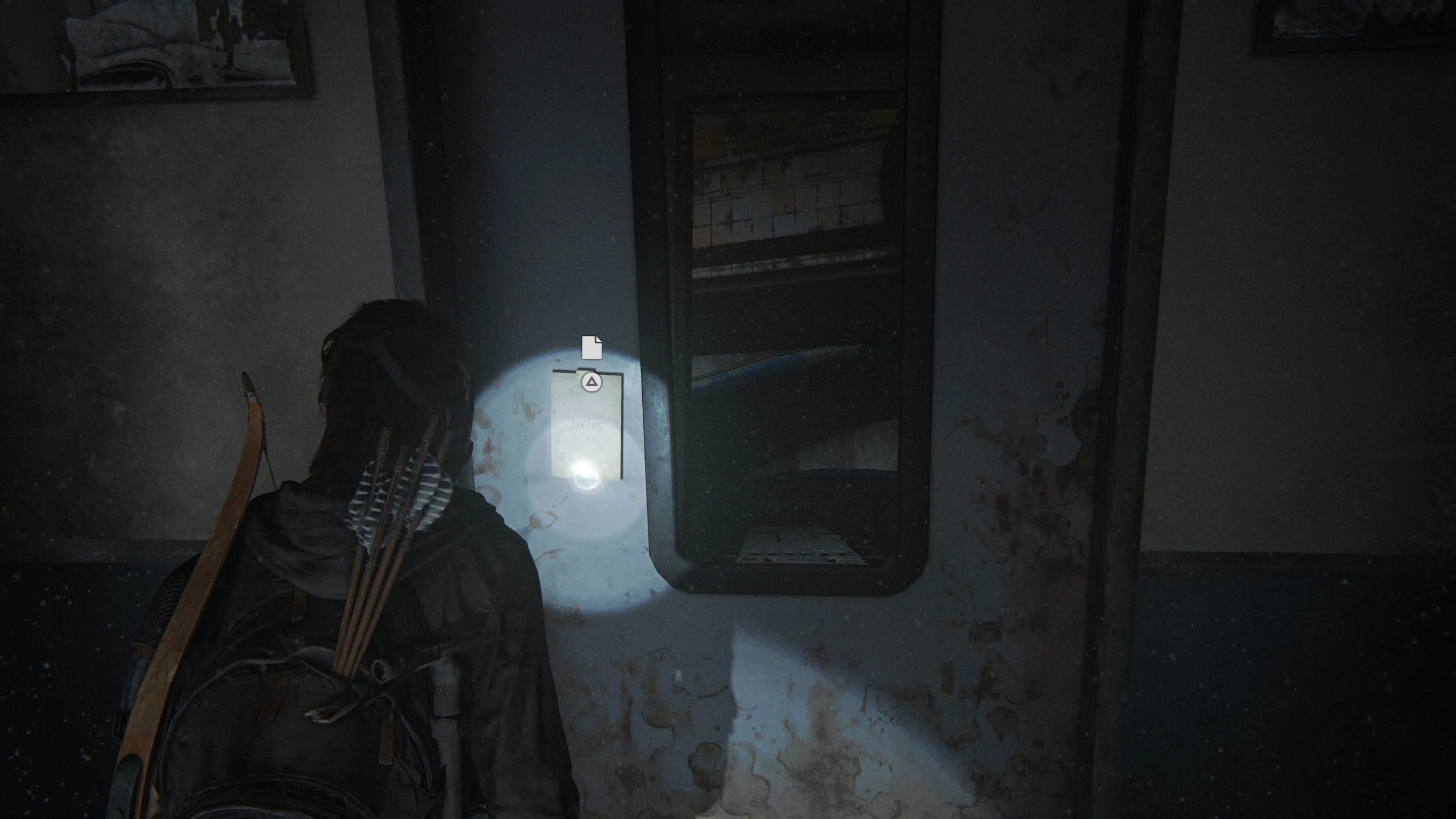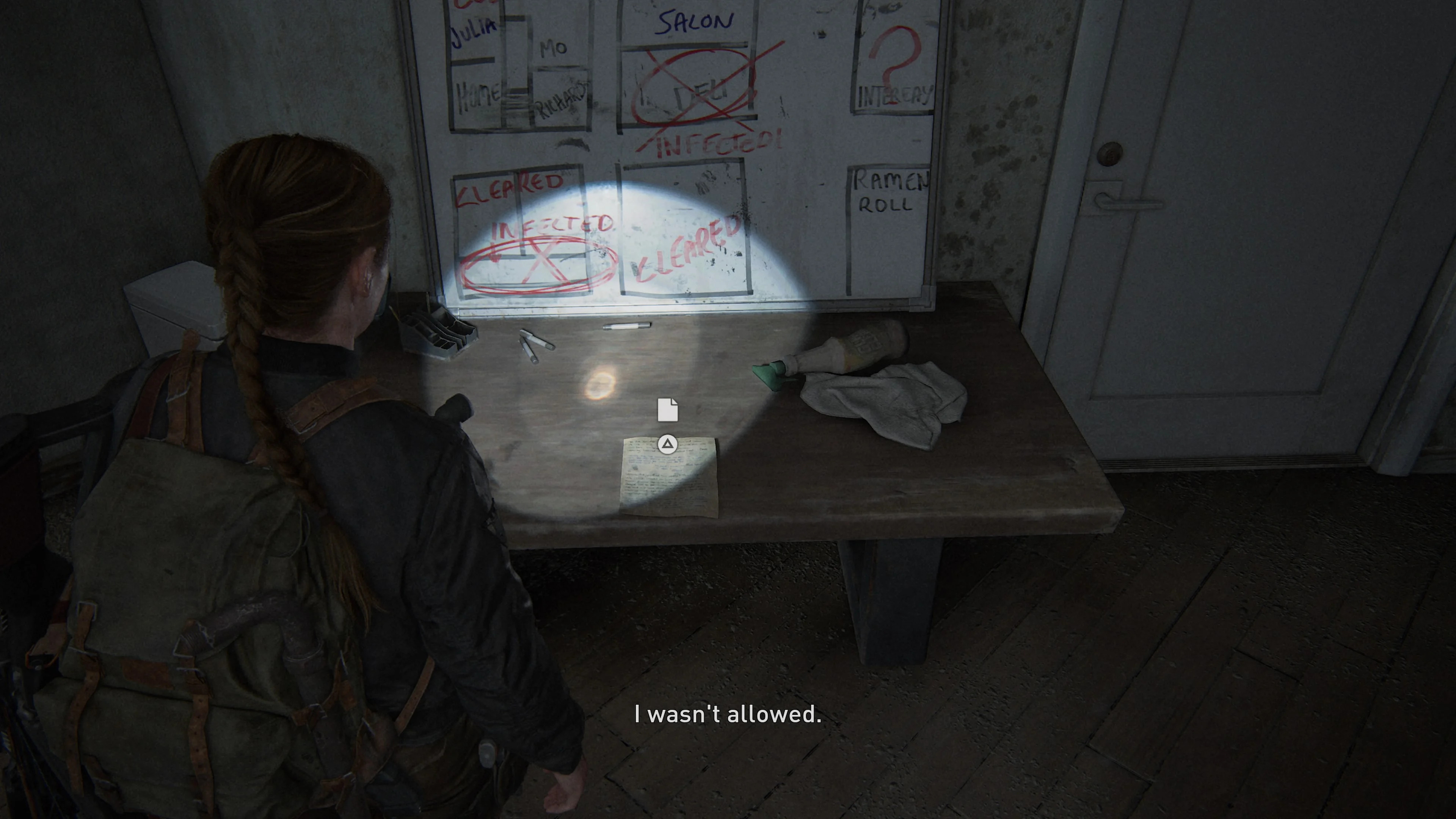 Обойти комнату с книгами для детей, вы обнаружите документы на столе в задней части комнаты. Напротив стены будет лежать заброшенная консоль PlayStation 3. Чуть праве будут документы, а также фотография, на которую девушка посмотрит, прежде, чем положить в инвентарь.