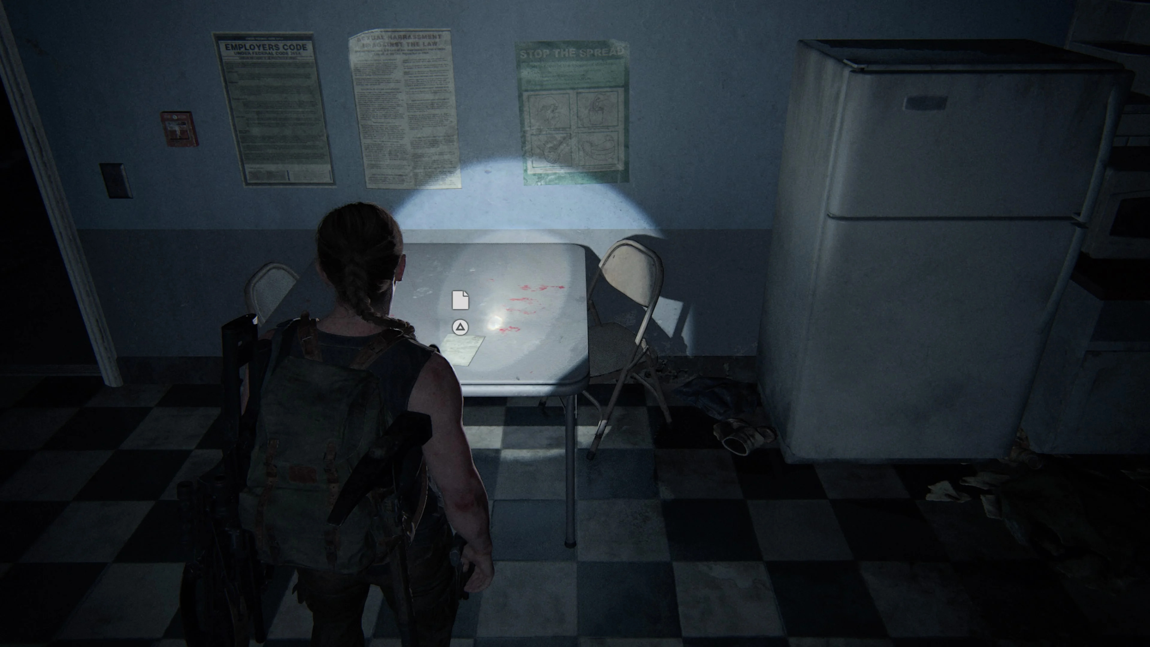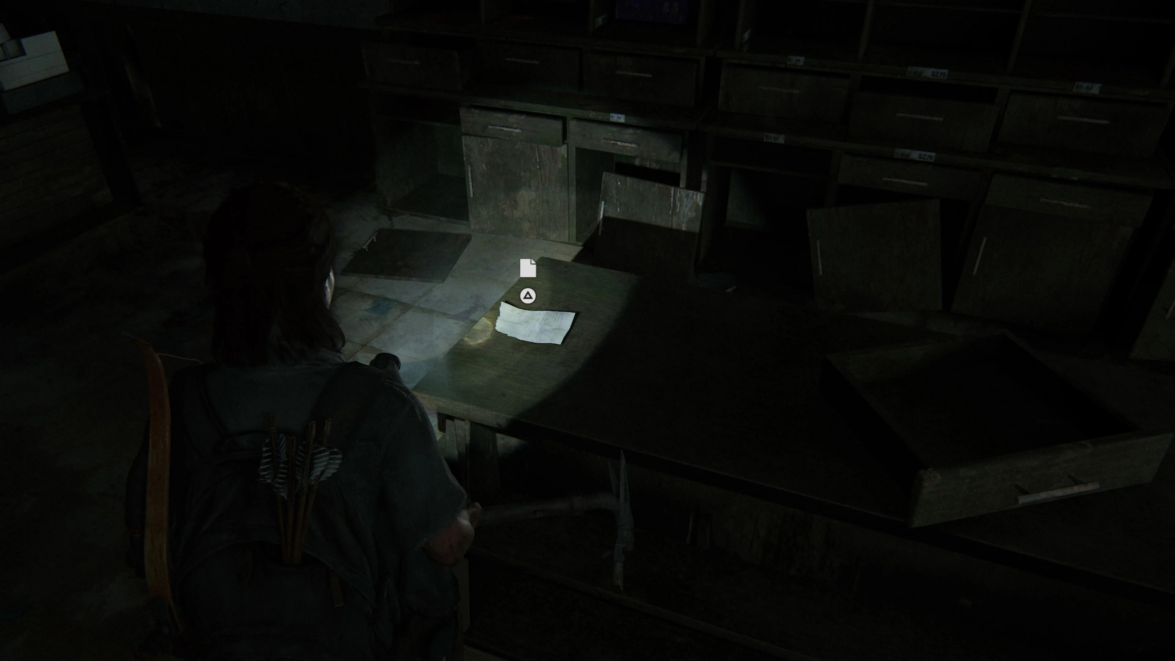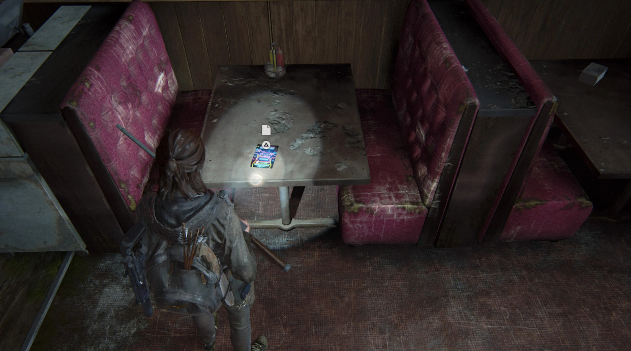 После того, как Элли и Дина успешно проникнут в супермаркет, будет эпизод, когда девушкам придется надеть противогазы, чтобы обезопасить себя от спор. Просочитесь через разлом в стене, вы окажетесь перед доской с надписью «Работник недели». Справа будет металлическая дверь. Откройте ее, чтобы войти в комнату. Артефакт лежит на столе, справа от сейфа.