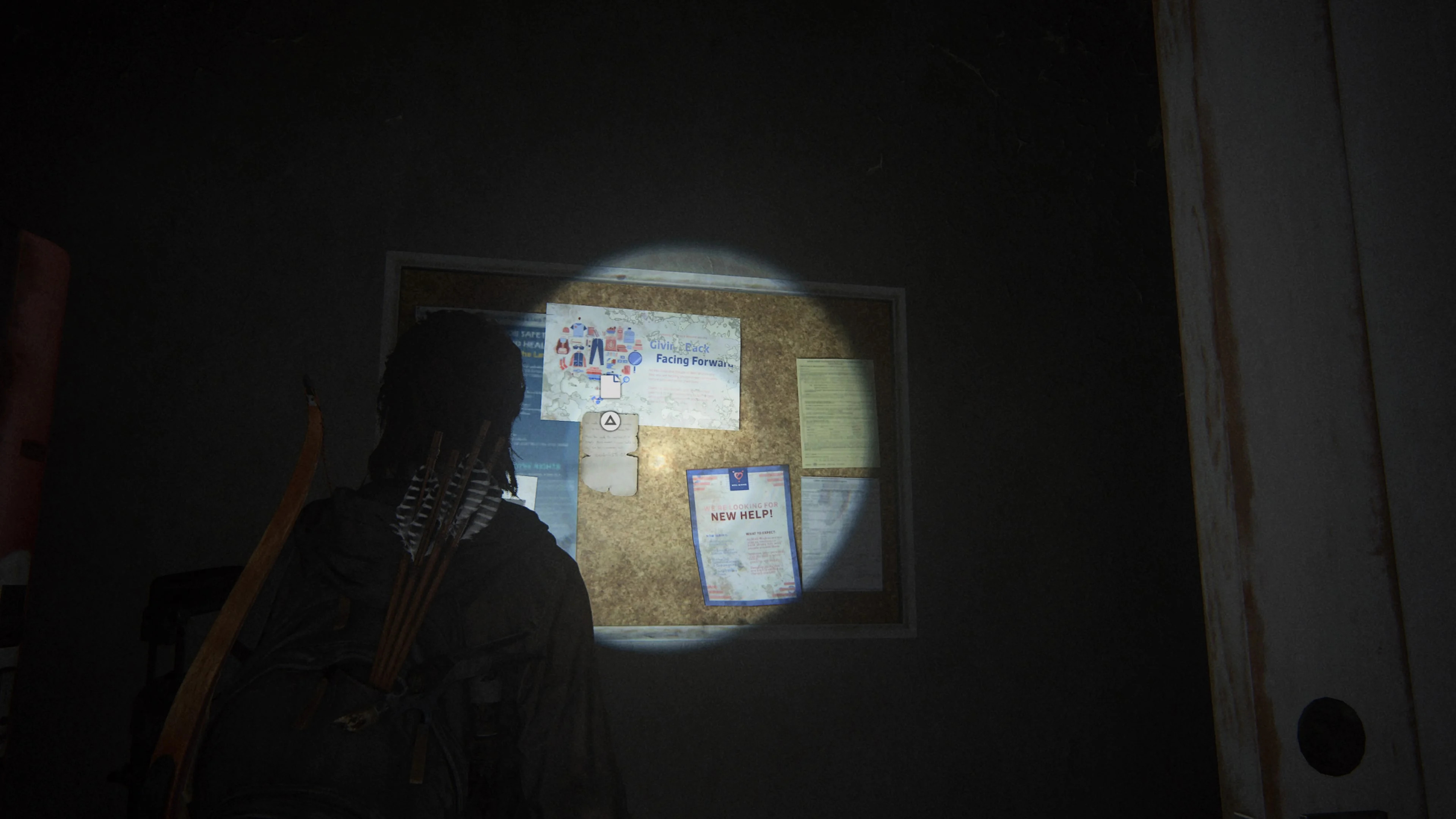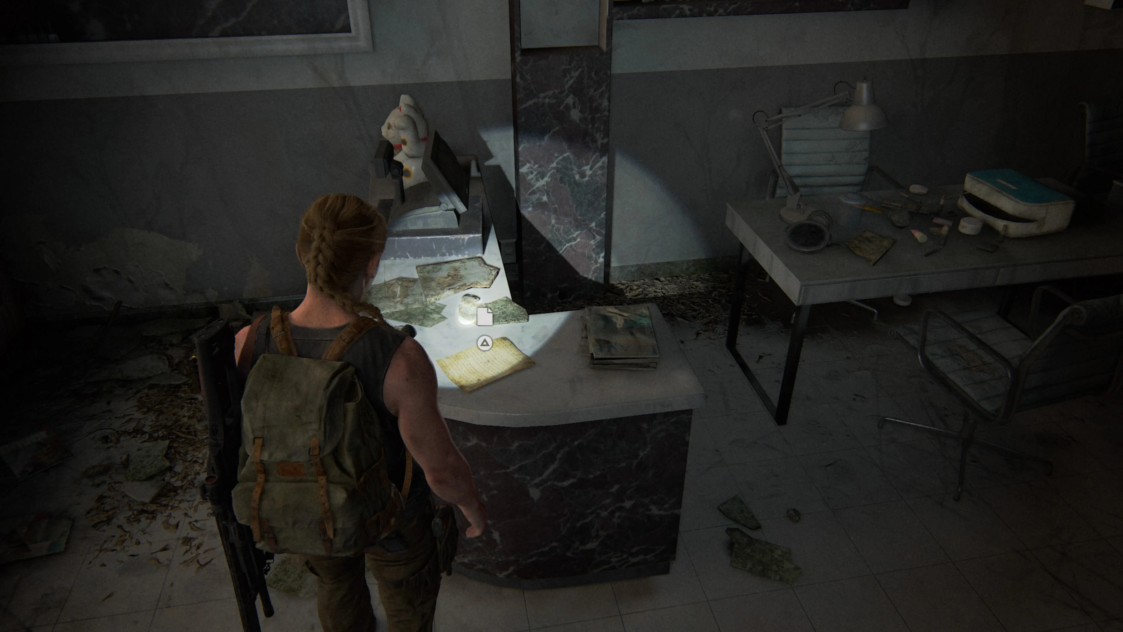 Как только начнется шторм, Элли и Дина укроются в здание публичной библиотеки. Вам необходимо разбить окно, чтобы получить доступ к офисному помещению. В конце комнаты будет дверь, ведущая в другую комнату. Там вы найдете артефакт.