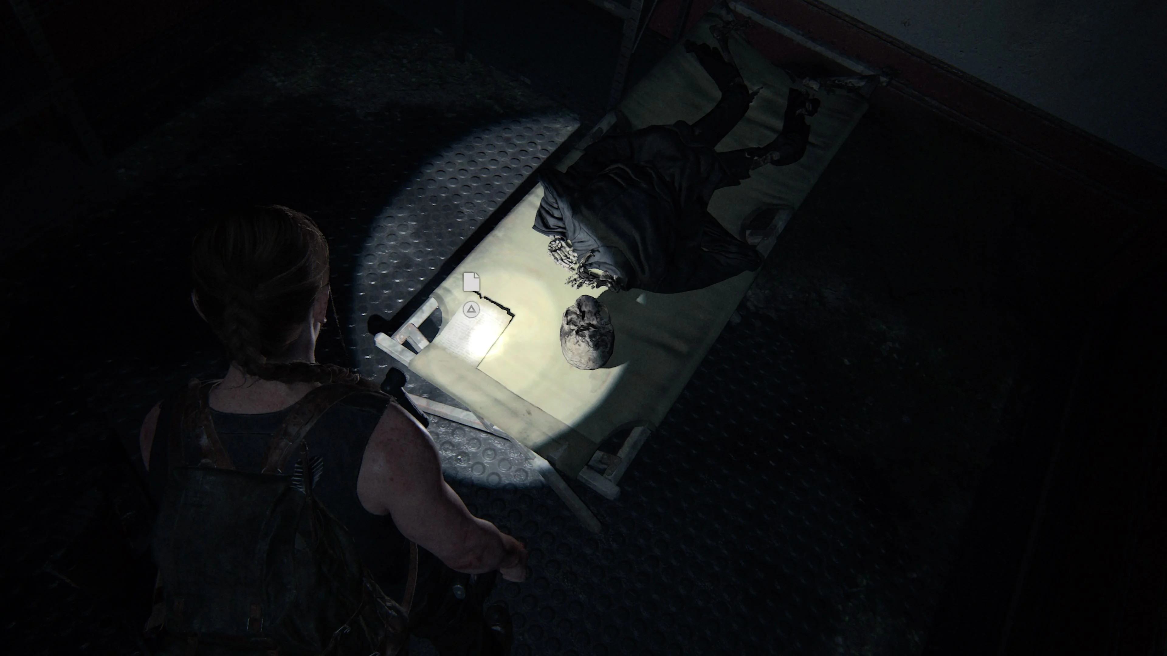 Вскоре после расставания с Норой, вам нужно спуститься по лестнице, чтобы найти хирургическое оборудование. Перед лестницей проползите под какими-нибудь картотечными шкафами справа от вас, чтобы войти в другую комнату. Артефакт лежит рядом с трупом, на полу.