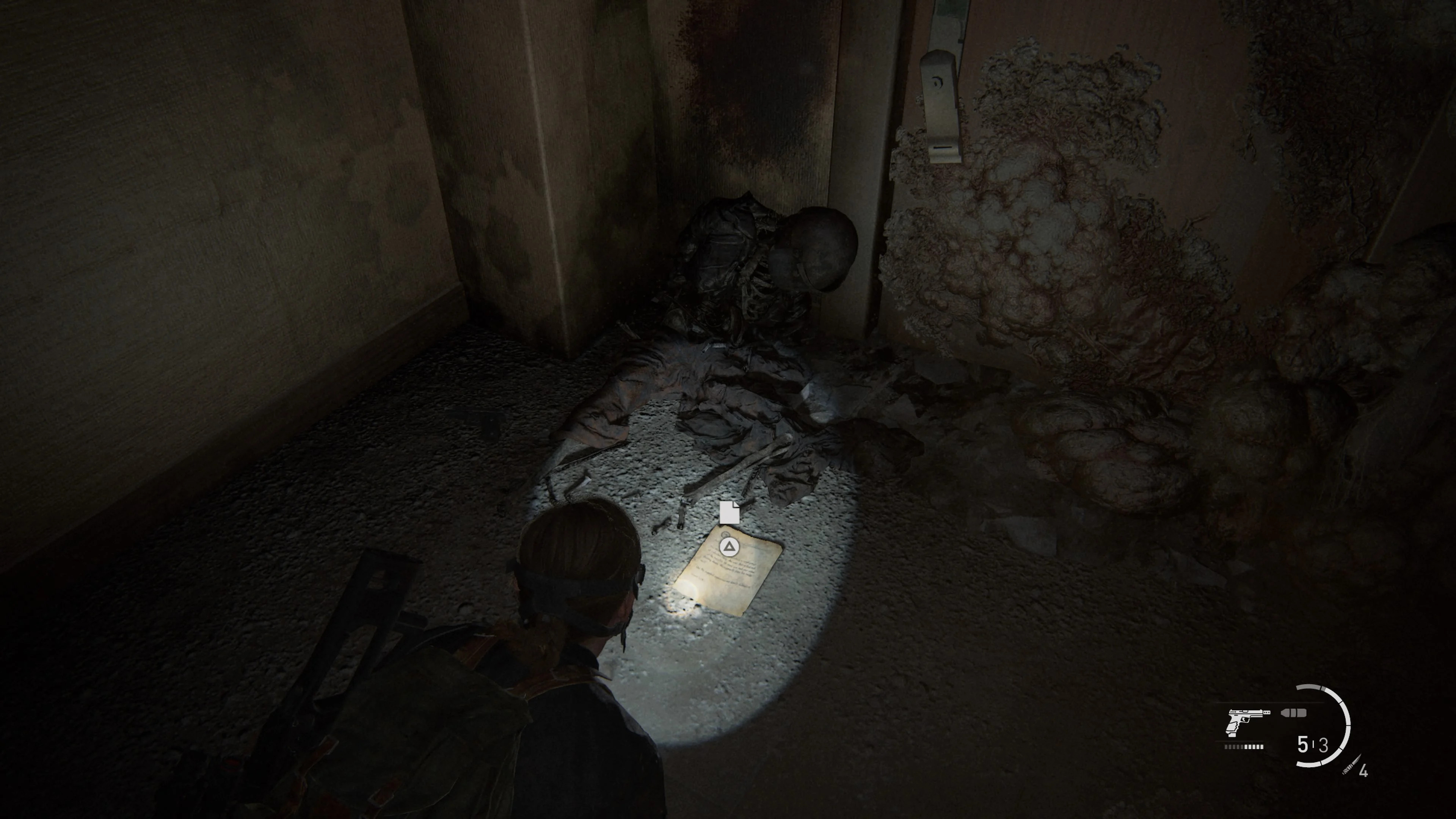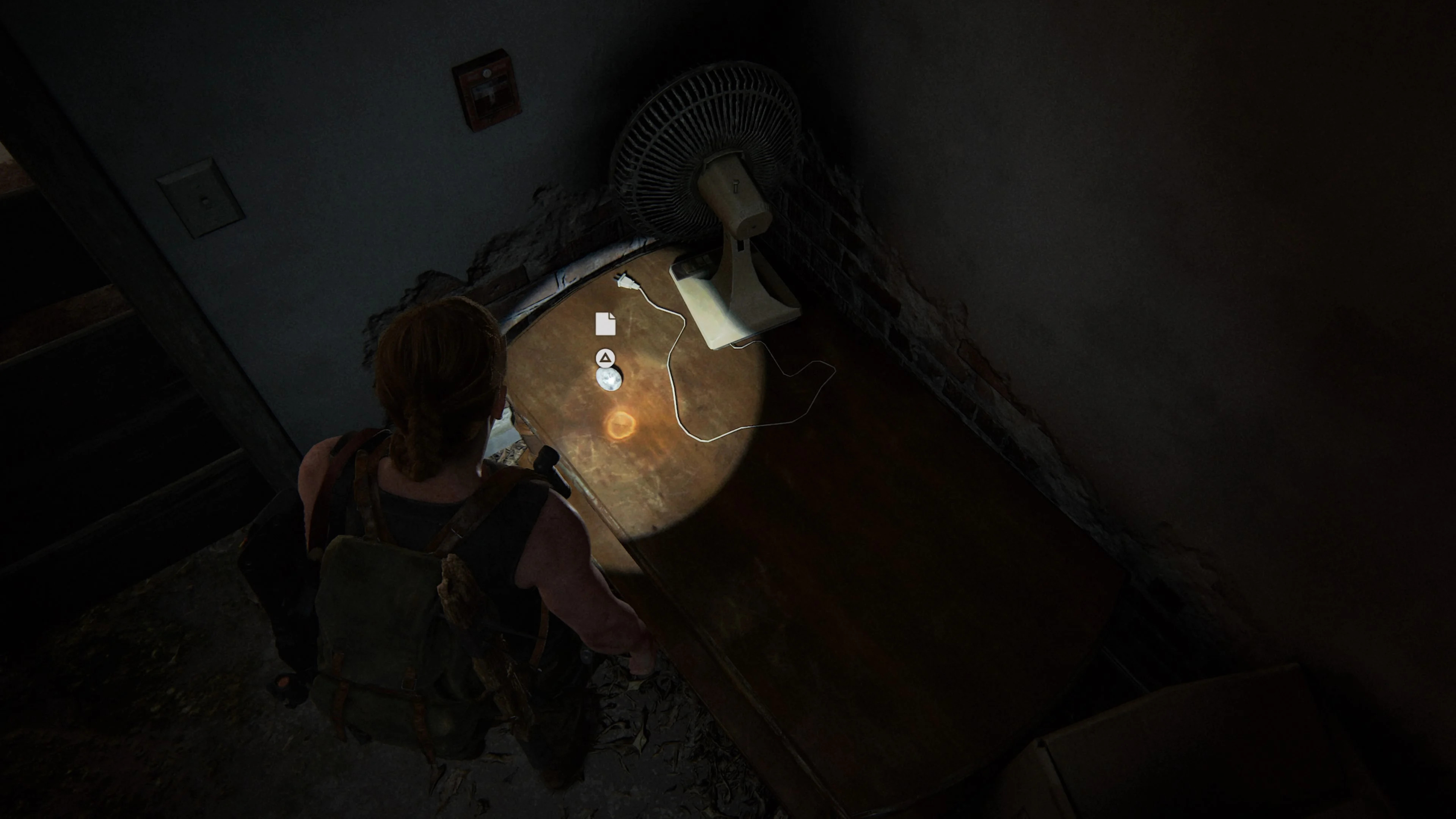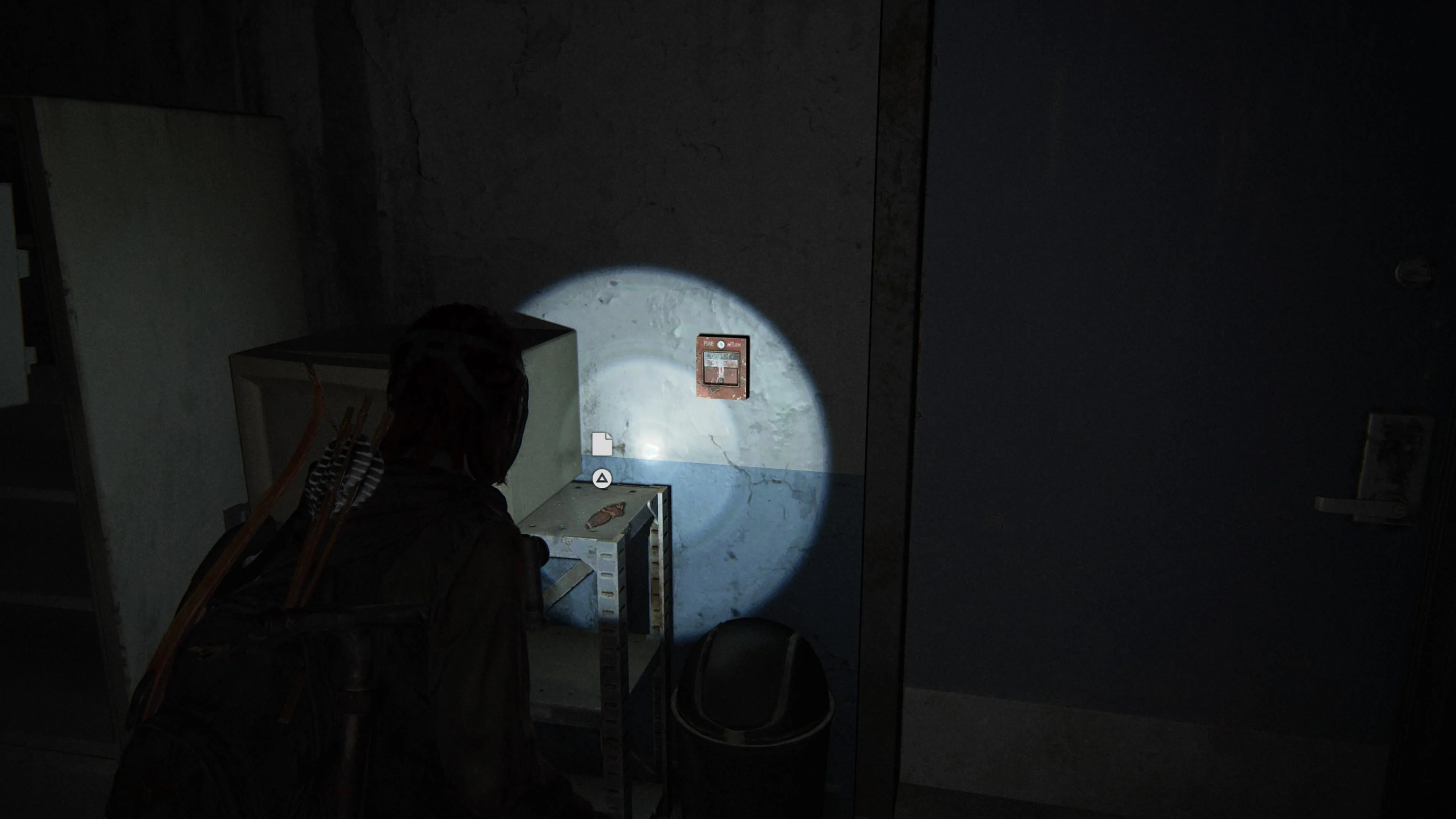 Когда вы используете пожарный шланг в качестве самодельной веревки, сползите на пол и проползите через отверстие в стене. Вы найдете артефакт рядом с трупом.