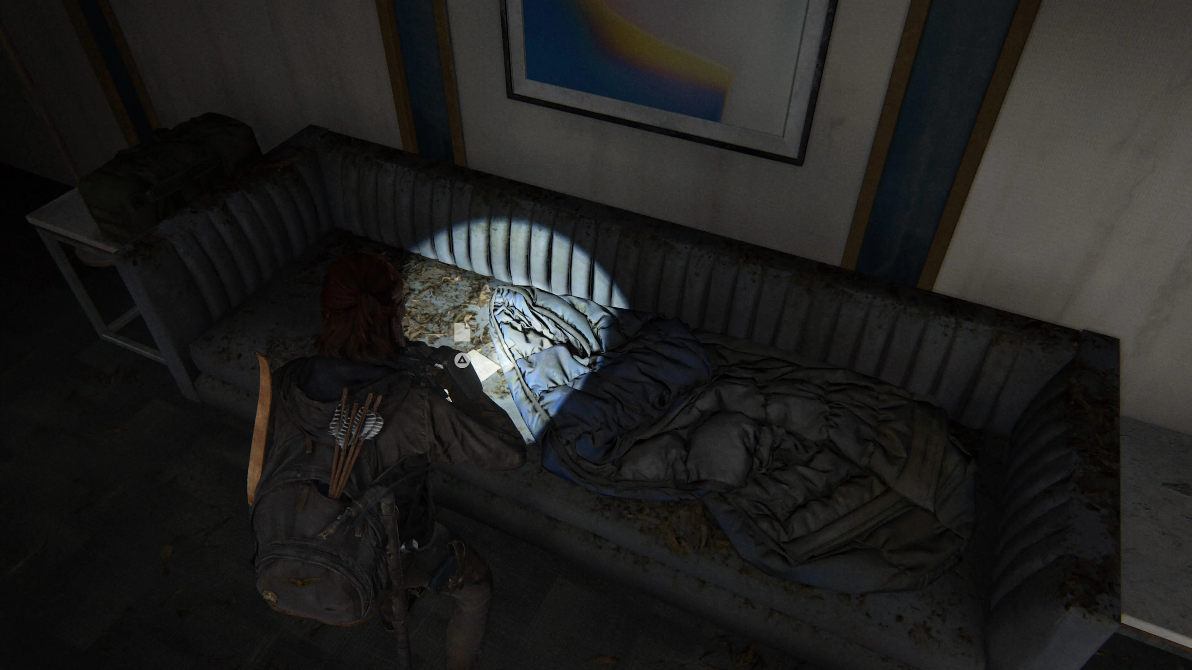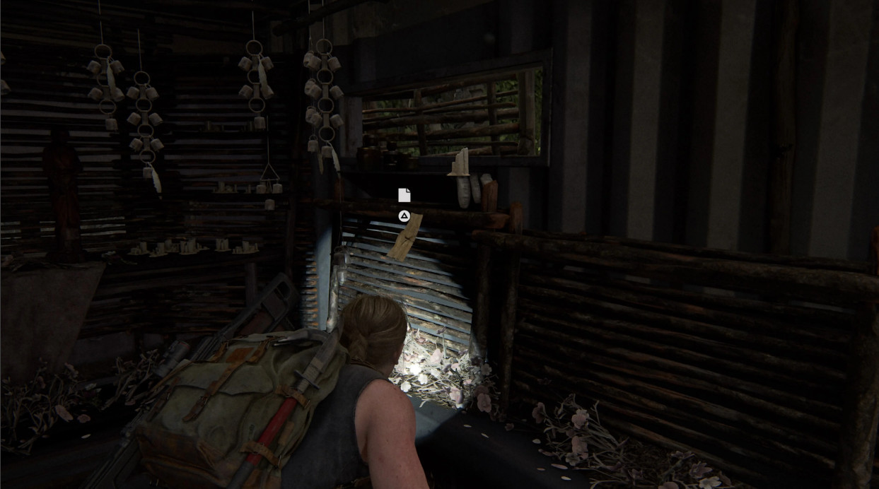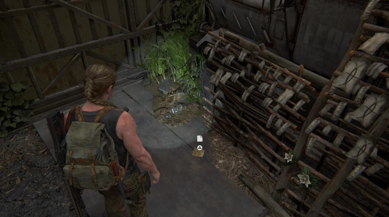 Как только вы пересечете речной порог, вы окажетесь внутри здания, на которое Эбби хочет забраться. На втором этаже идите прямо от лестницы в первую комнату, которую вы видите. Артефакт лежит на полу перед коричневой, частично сломанной дверью.