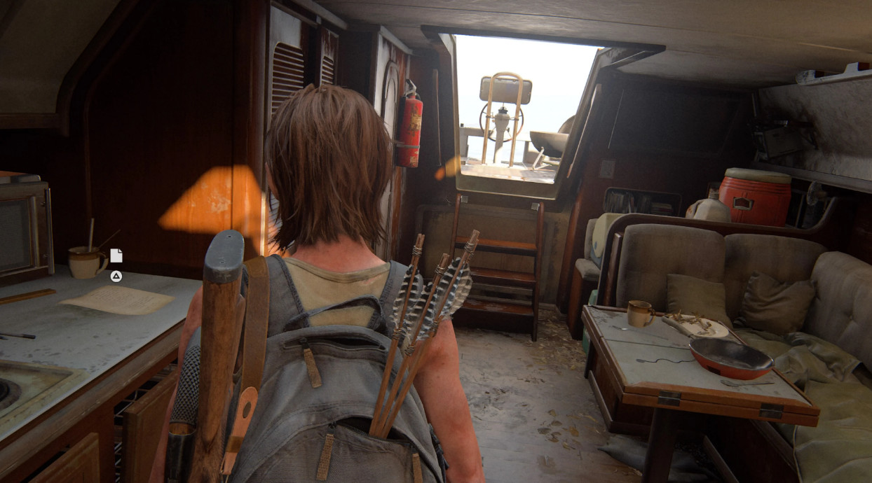 В самом начале главы, пока Элли еще на яхте, вы найдете артефакт перед микроволновой печью на кухонной поверхности.