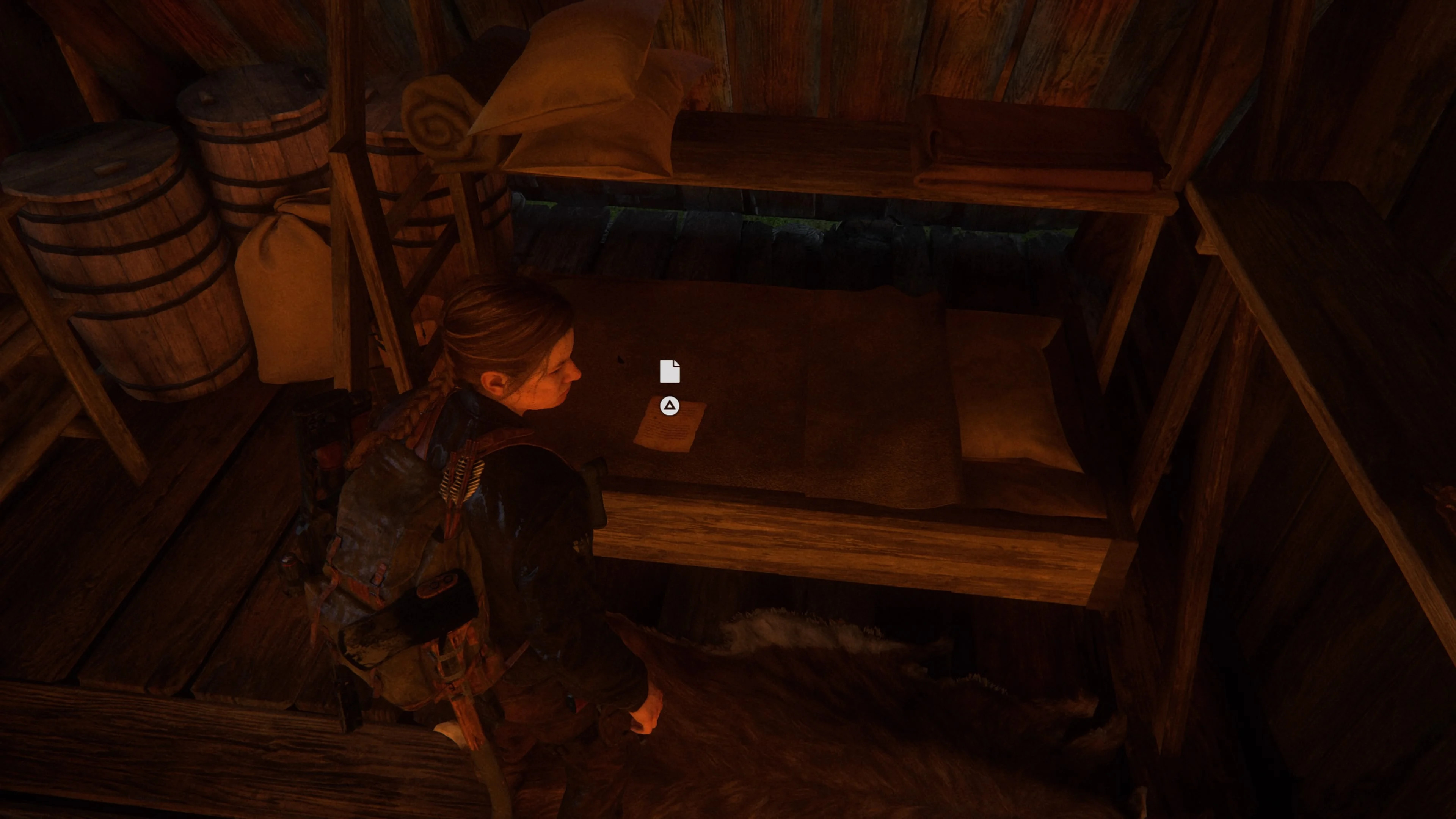 Спустившись с поезда, когда Элли увидит большую группу заключенных, направляйтесь к левому зданию и ищите бочонок рядом со стеной. К нему прикреплен артефакт.