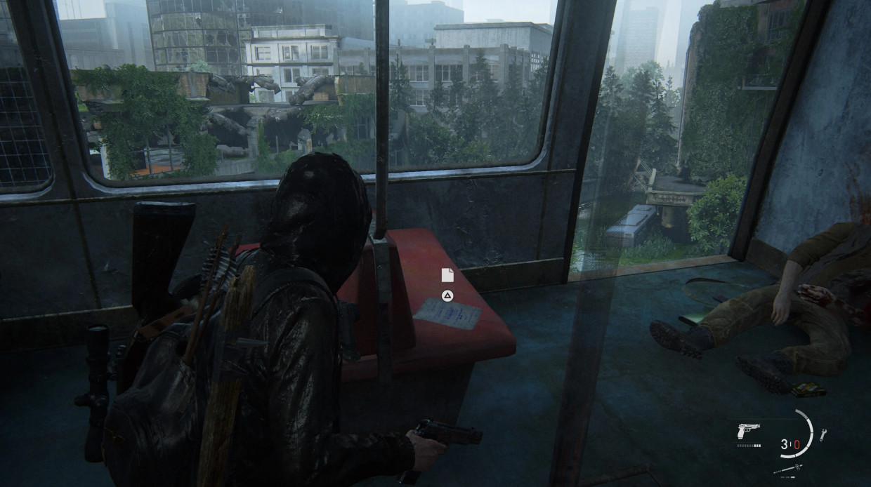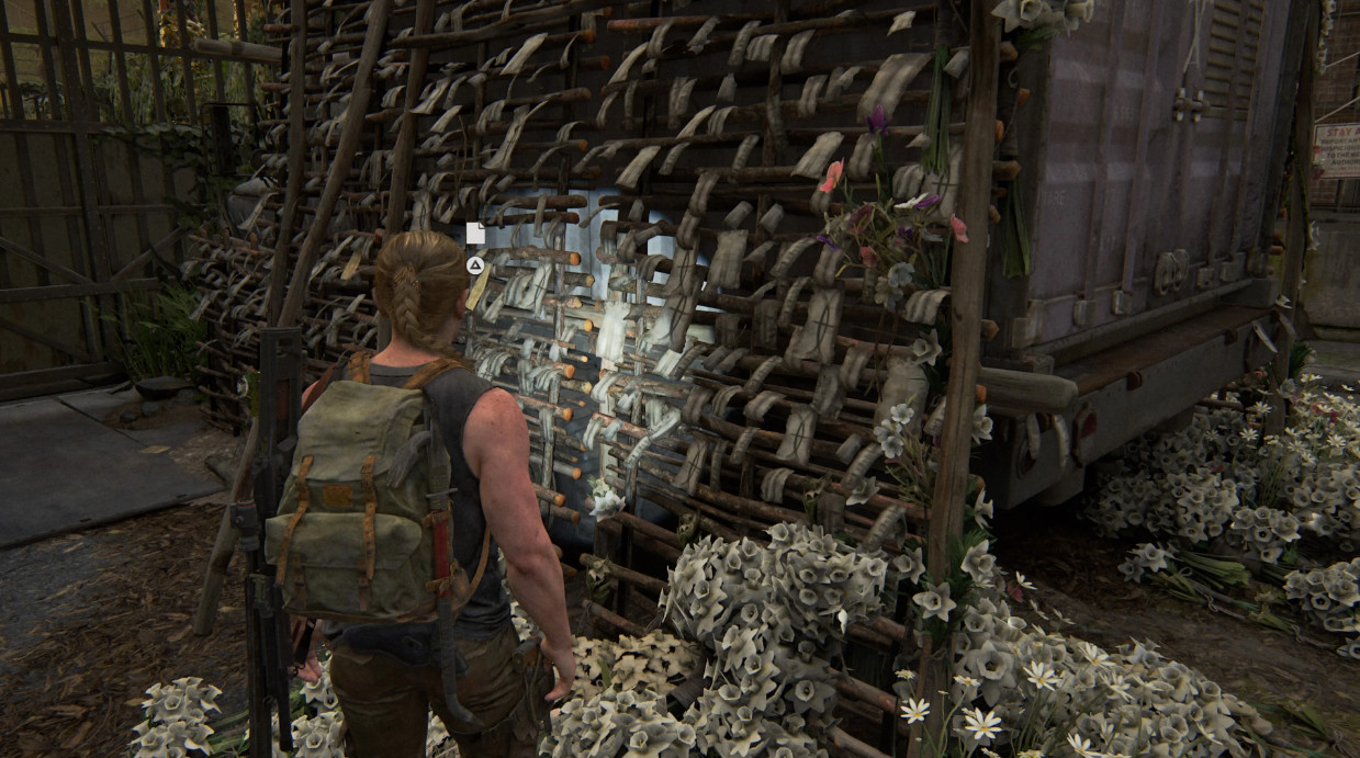 После того, как вы спуститесь с обзорной башни, Элли окажется в ловушке перед воротами, к которым нужно провести электричество. В одной из кабиной, в которую можно войти, разбив окно, будет стол с монитором и клавиатурой, а слева от него ящик. Откройте его, чтобы получить артефакт.