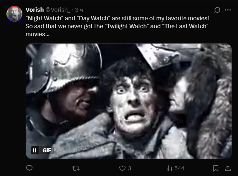 «Ночной дозор» и «Дневной дозор» до сих пор одни из моих любимых фильмов! Жаль, что мы так и не получили экранизации «Сумеречного дозора» и «Последнего дозора»