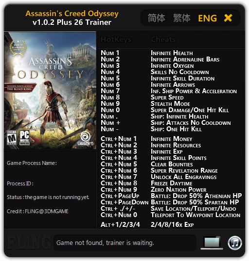 Трейнер +26 для версии 1.0.2 от FLiNG для Assassin's Creed Odyssey