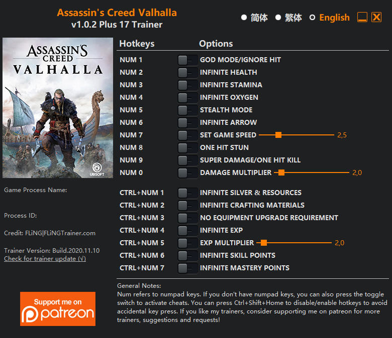 Трейнер +17 для версии 1.0.2 от FLiNG для Assassin's Creed Valhalla