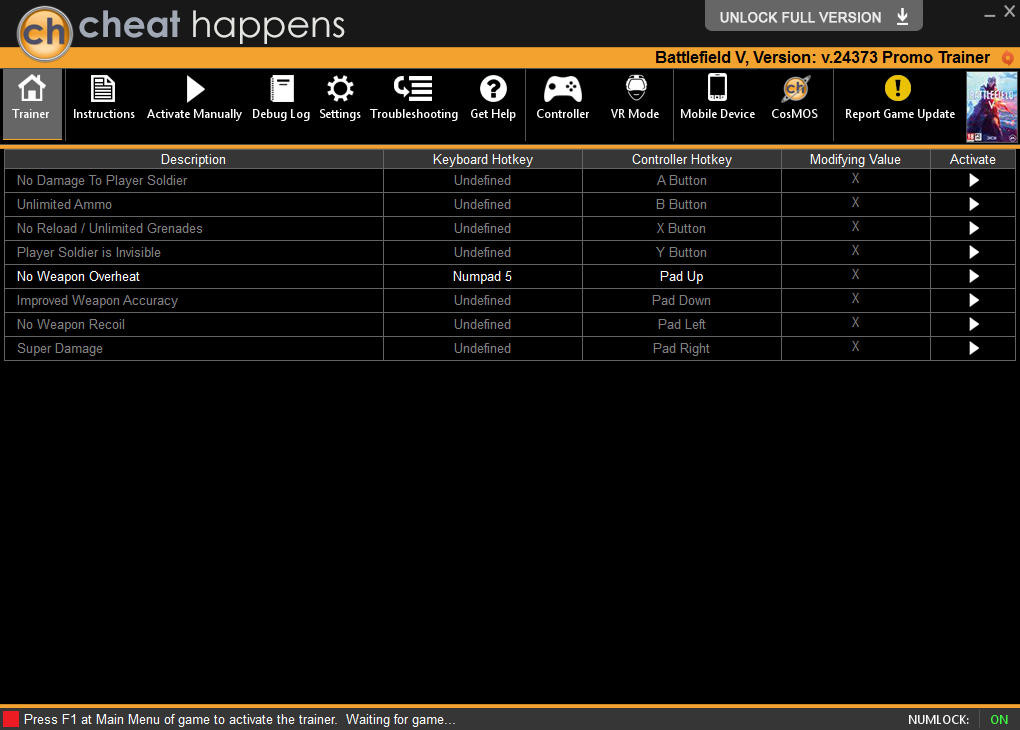 Трейнер +8 для версии 24373 от CheatHappens.com для Battlefield 5