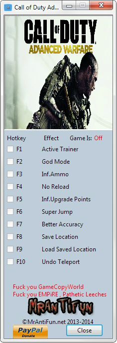Трейнер +8 для версии 1.0 от MrAntiFun для Call of Duty: Advanced Warfare