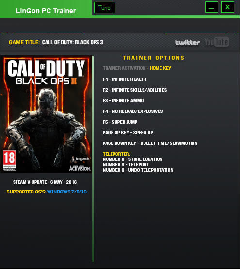 Трейнер +9 для обновления от 6 мая 2016 года от LinGon для Call of Duty: Black Ops 3