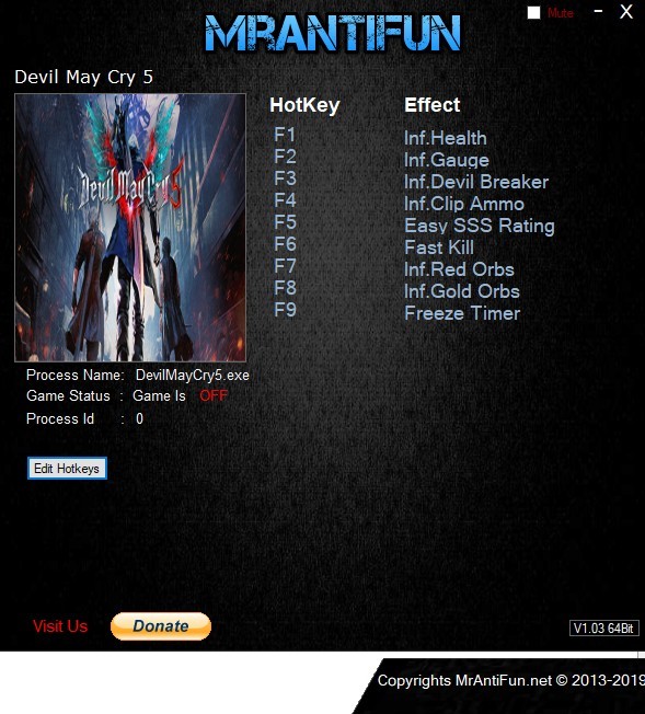 Трейнер +9 для версии 1.0 от MrAntiFun для Devil May Cry 5