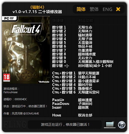 Трейнер +20 для версий 1.0 - 1.7.15 от FLiNG для Fallout 4