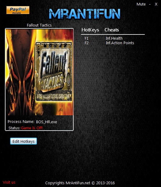 Трейнер +2 для версии 1.2001 от MrAntiFun для Fallout Tactics: Brotherhood of Steel