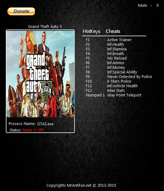 Трейнер +12 для версии b1.0.331.1 от MrAntiFun для Grand Theft Auto 5