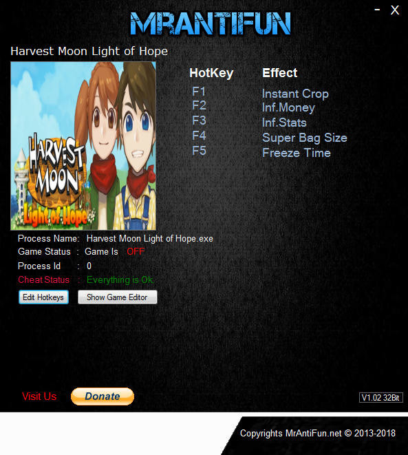 Трейнер +5 для версии 2.00 от MrAntiFun для Harvest Moon: Light of Hope