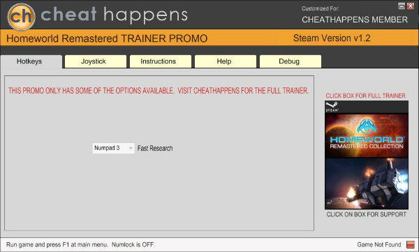 Трейнер +1 для версии 1.2 (Steam) от CH для Homeworld Remastered Collection