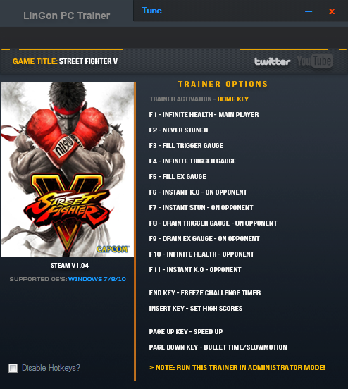 Трейнер +15 для версии 1.04 от LinGon для Street Fighter 5
