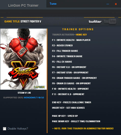 Трейнер +15 для версии 1.06 от LinGon для Street Fighter 5