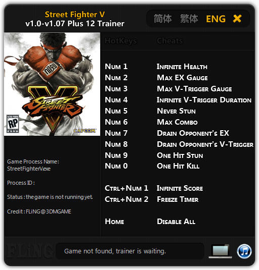 Трейнер +12 для версий 1.0 - 1.07 от FLiNG для Street Fighter 5