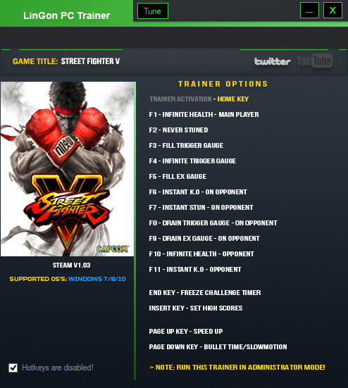 Трейнер +15 для версии 1.07 от LinGon для Street Fighter 5