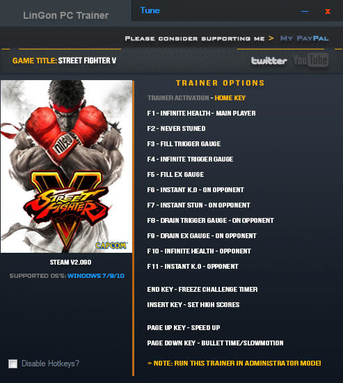 Трейнер +15 для версии 2.090 от LinGon для Street Fighter 5