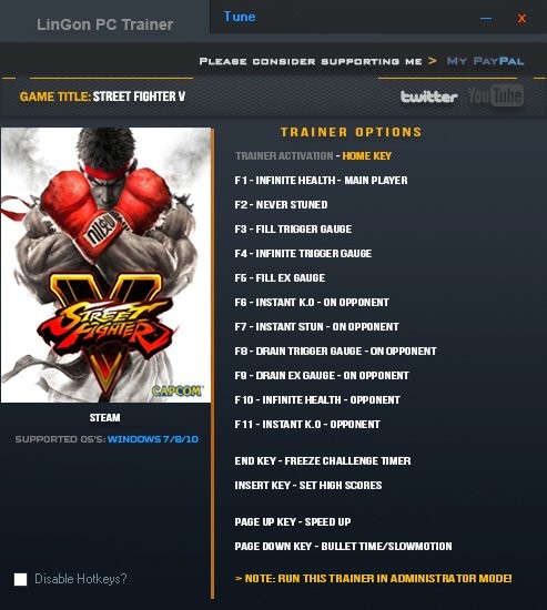 Трейнер +15 для версии 2.90b от LinGon для Street Fighter 5