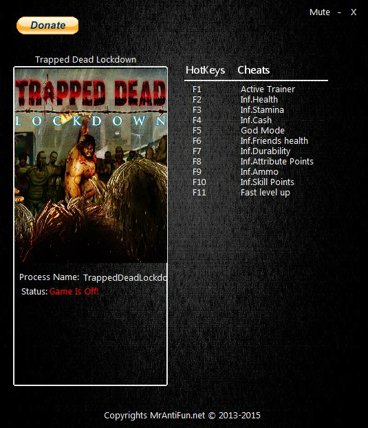 Трейнер +10 для версии 1.0 от MrAntiFun для Trapped Dead: Lockdown