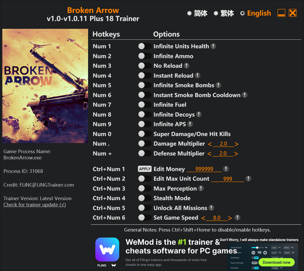 Трейнер для Broken Arrow версии 1.0.11 от FLiNG +18
