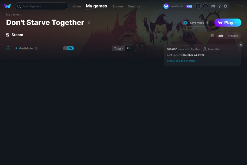 Трейнер для Don't Starve Together версии 24.10.2022 от MRANTIFUN / WEMOD +1