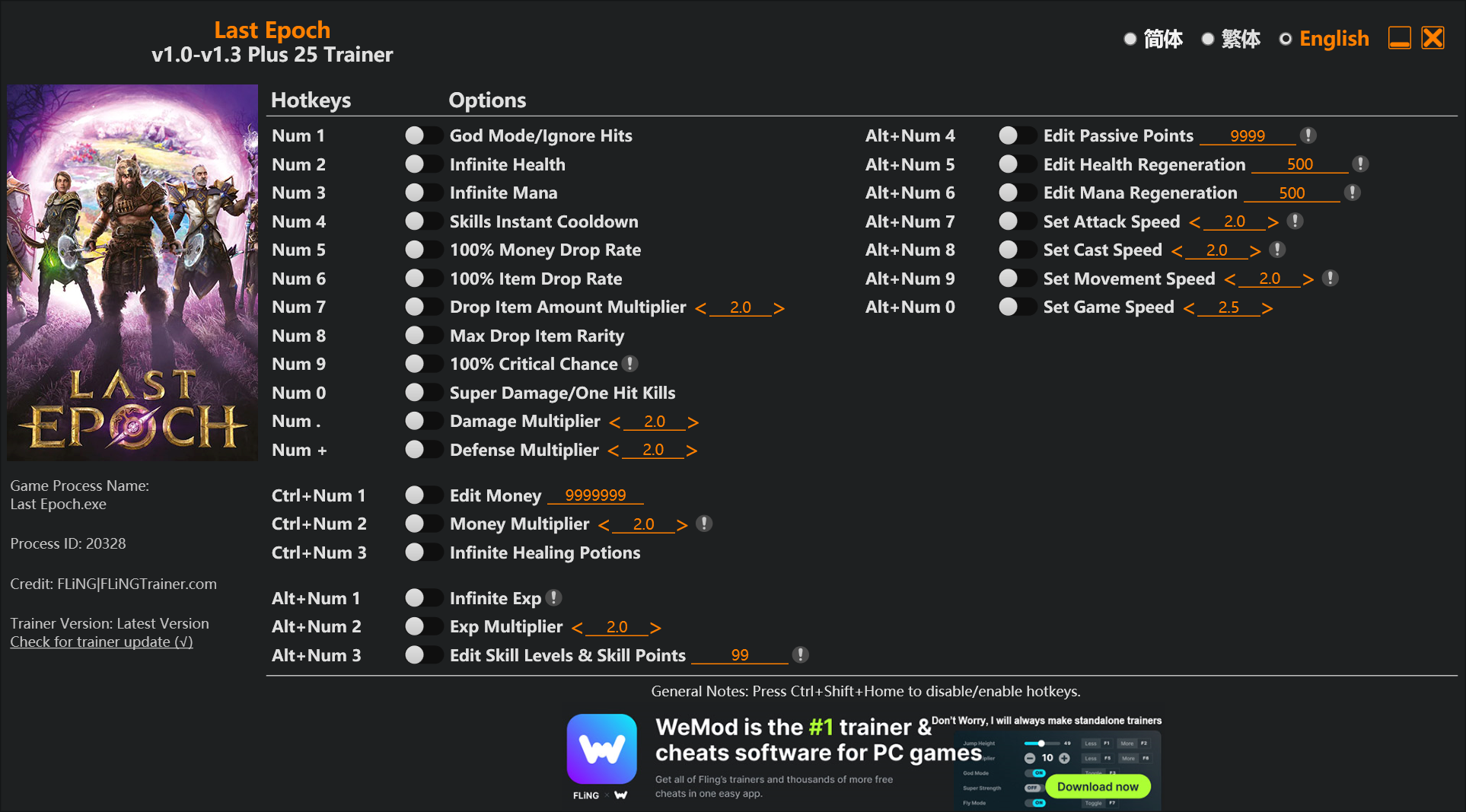 Трейнер для Last Epoch версии 1.3 от FLiNG +25