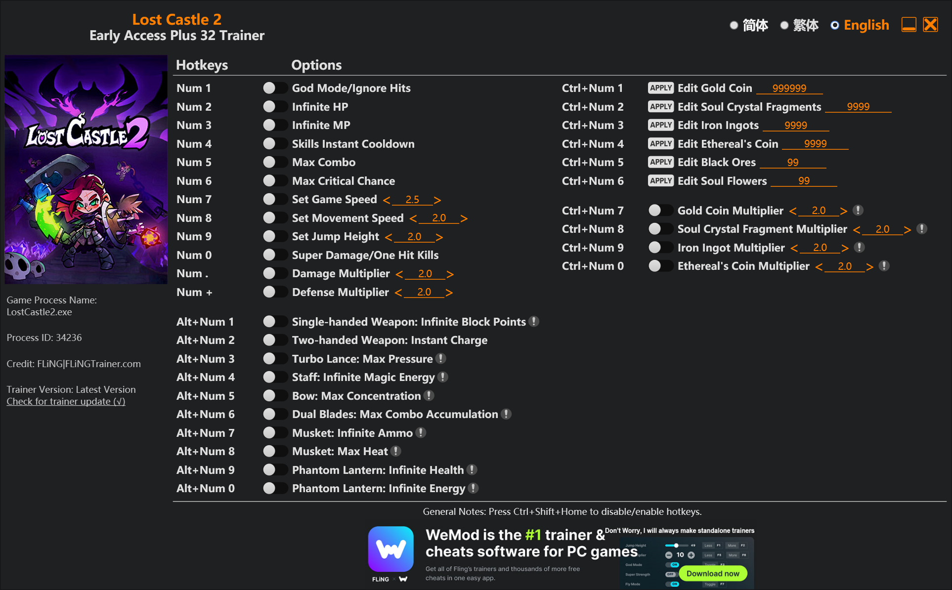 Трейнер для Lost Castle 2 версии в раннем доступе от FLiNG +32